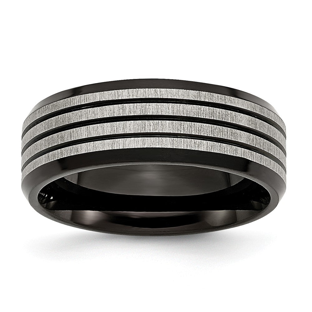 Stainless Steel Striped 8mm Black IP-plated Brushed/Polished Band Elevate your style and mark your most treasured moments with this Stainless Steel Striped 8mm Black IP-plated Band—the perfect blend of modern...