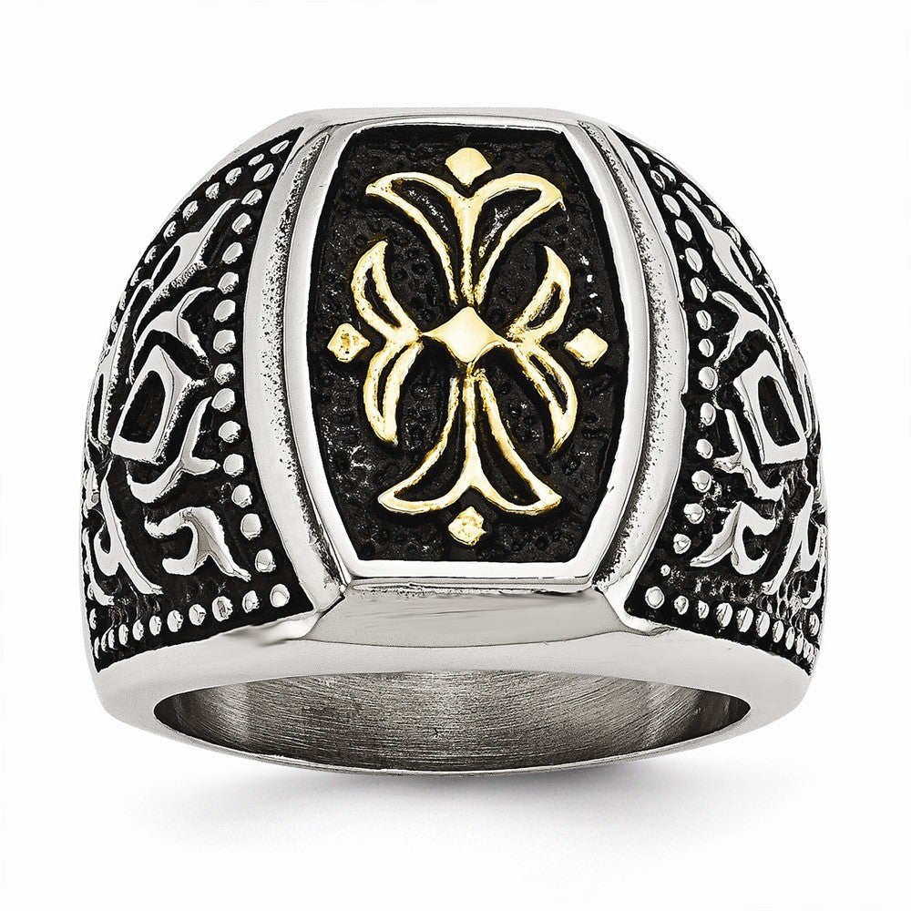 Stainless Steel Antiqued & Yellow IP-plated Cross Ring: A Timeless Blend of Faith and Style
