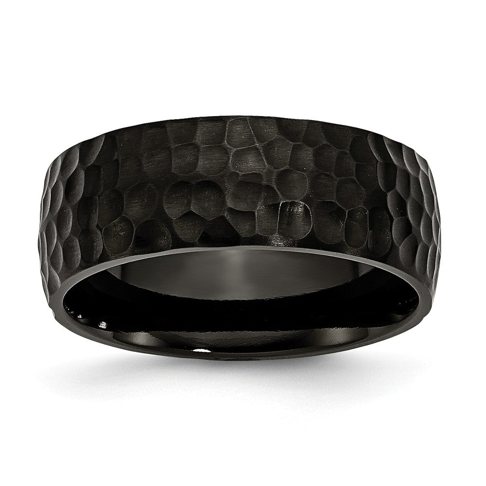 Embrace the perfect union of timeless style and unbeatable strength with the Stainless Steel Hammered Black Band Engravable 8mm Elegant Ring. Crafted for the modern individual, this sleek black band features a rugged hammered texture that gives it a distinctive, eye-catching look. Whether worn daily as a bold accessory or chosen as a meaningful gift, the combination of polished craftsmanship and long-lasting materials ensures this ring will always make a striking impression. With an engravable option to personalize this elegant ring, it truly becomes a piece that's uniquely yours.