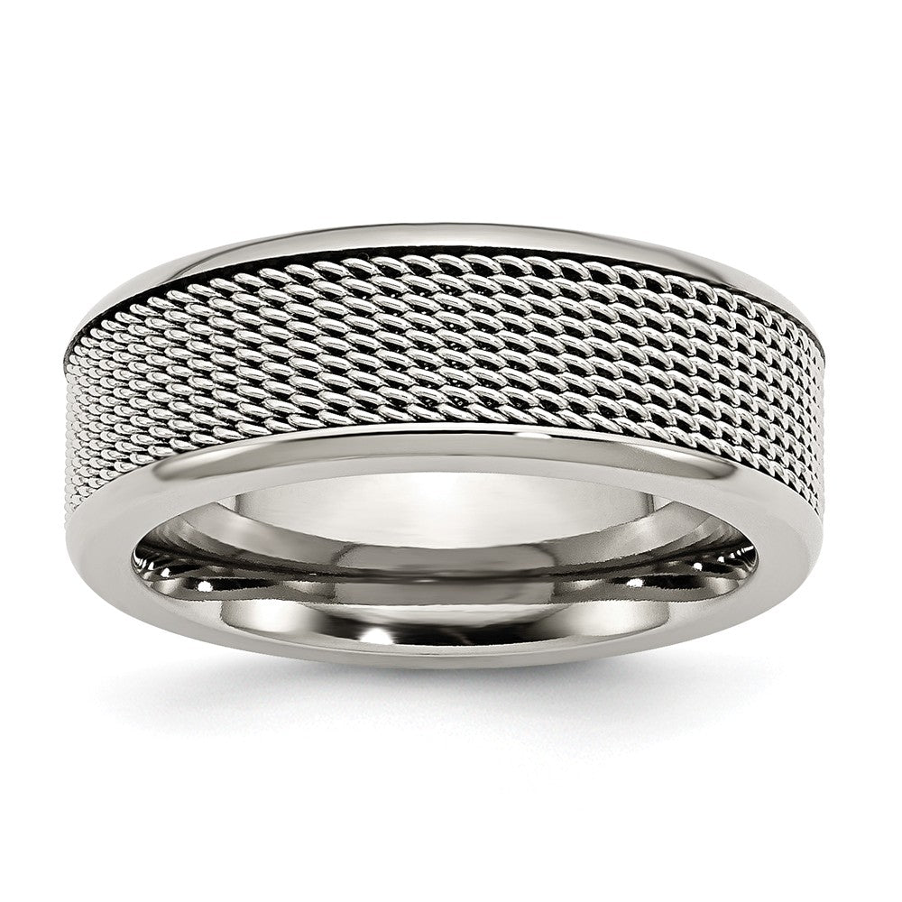 Stainless Steel Mesh Ring with Polished Finish, 8mm Band, Engravable