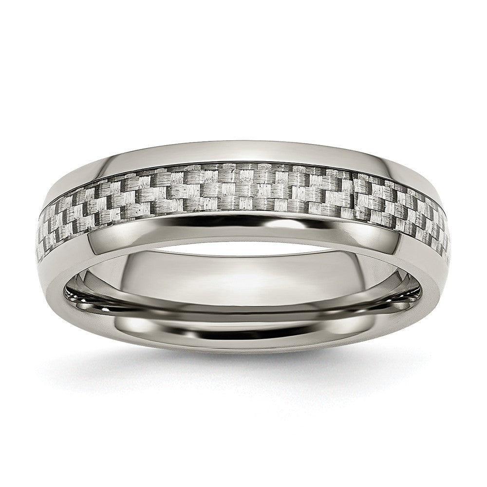 Stainless Steel Polished w/ Grey Carbon Fiber Inlay 6mm Band