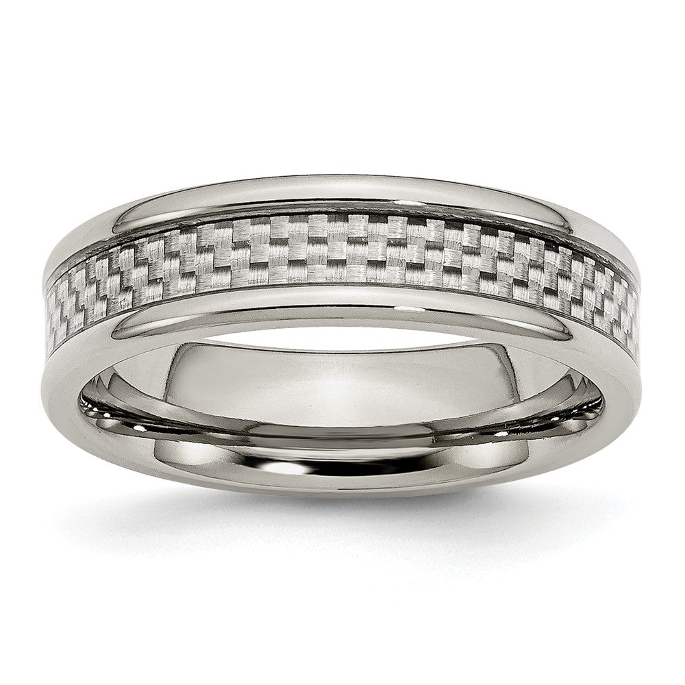 Sophia Jewelers Stainless Steel Ring with Grey Carbon Fiber Inlay - 6mm Engravable Band