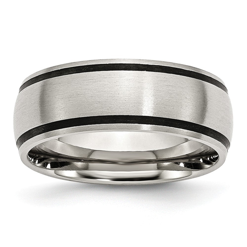 Elevate your jewelry collection or mark a special occasion with this bold and elegant Stainless Steel Black Rubber 8mm Brushed Band. Its unbeatable combination of modern chic and lasting quality is waiting to be yours.