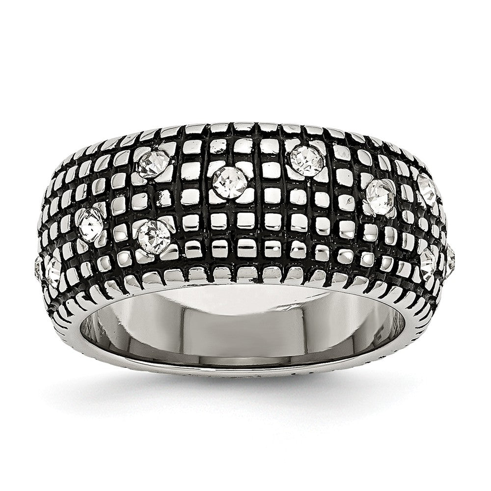 Stainless Steel Crystal Antiqued Ring – A Timeless Accent of Elegance and Sophistication