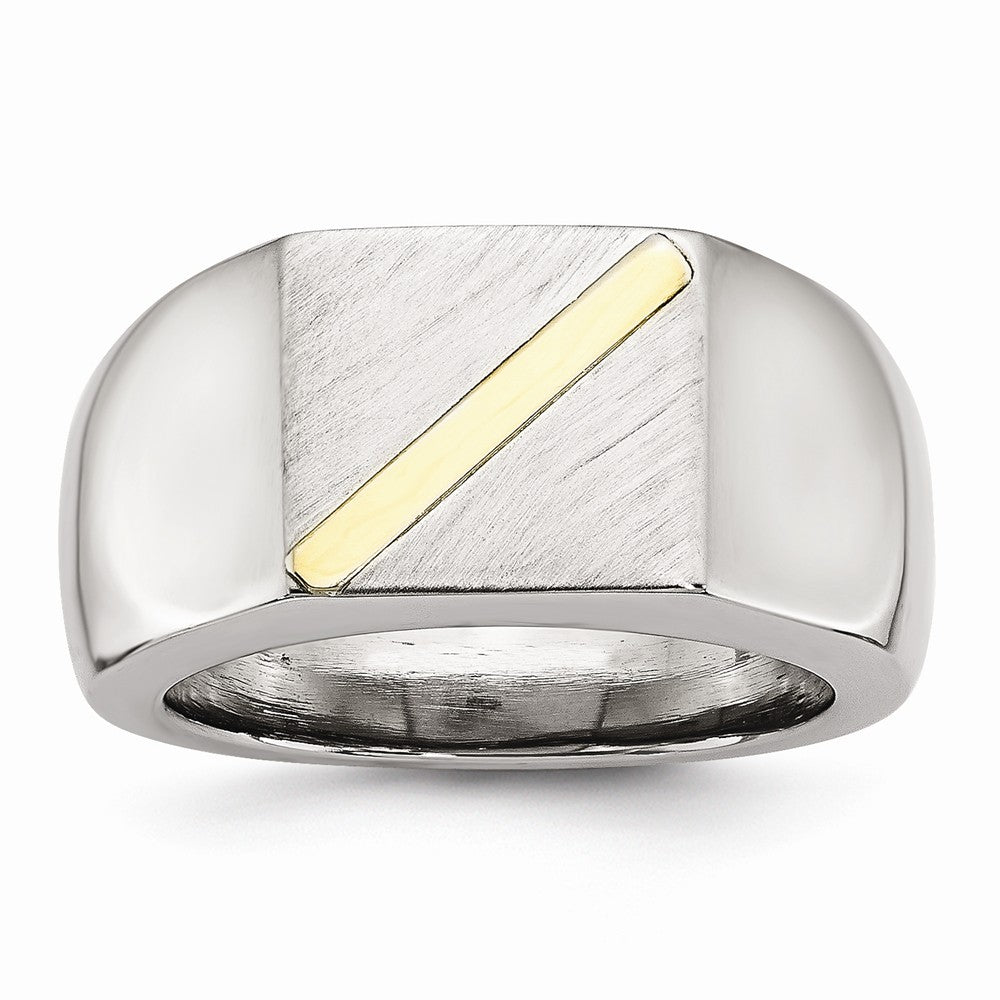 Stainless Steel Brushed and Polished with  14K Gold Stripe Signet Ring