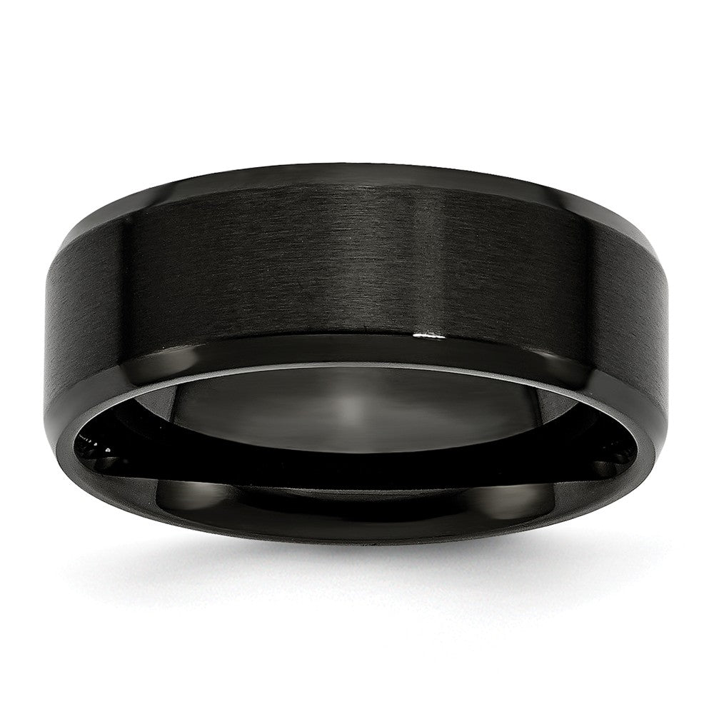 Stainless Steel 8mm Black IP-Plated Brushed/Polished Beveled Edge Band
