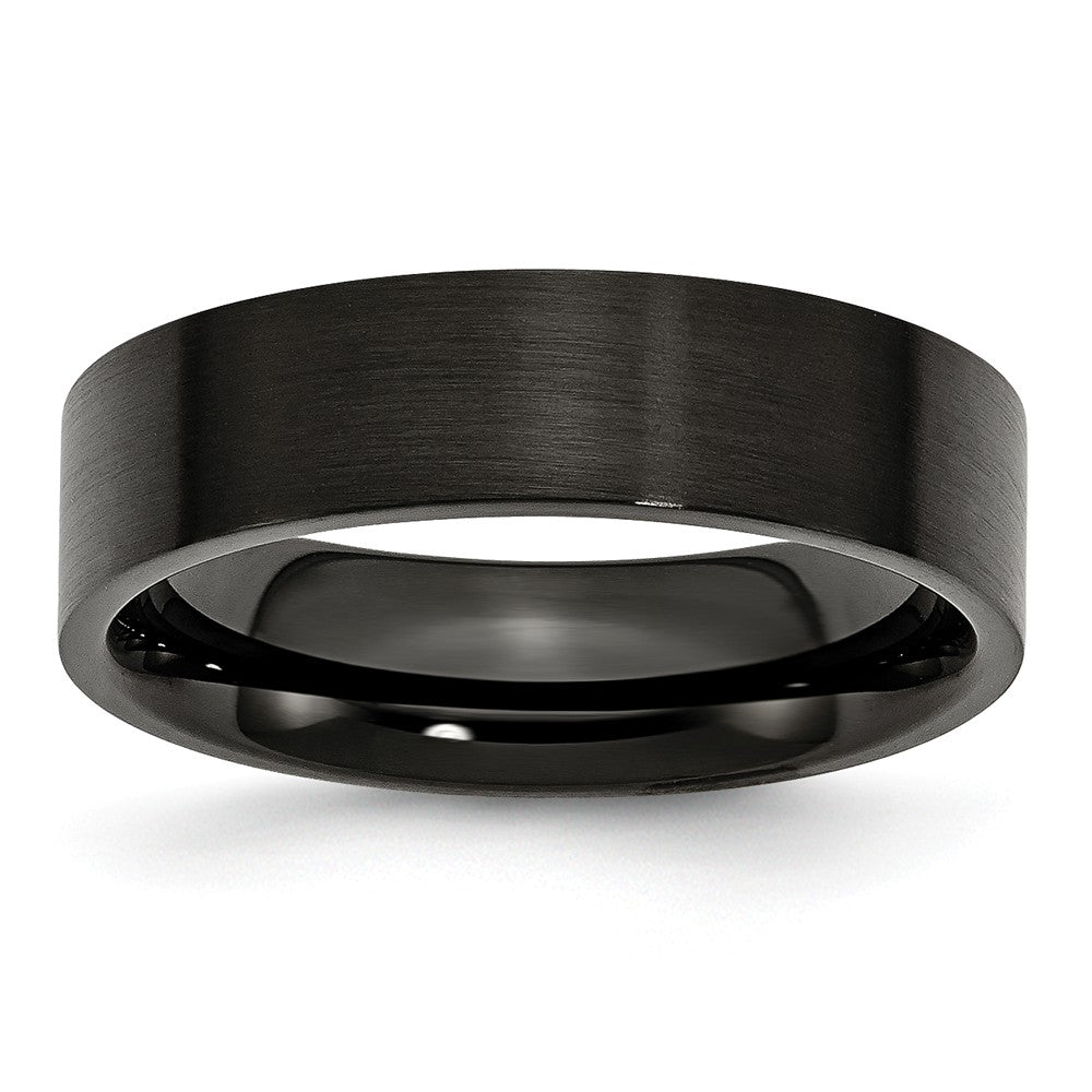 Stainless Steel 6mm Black IP-plated Brushed Flat Band