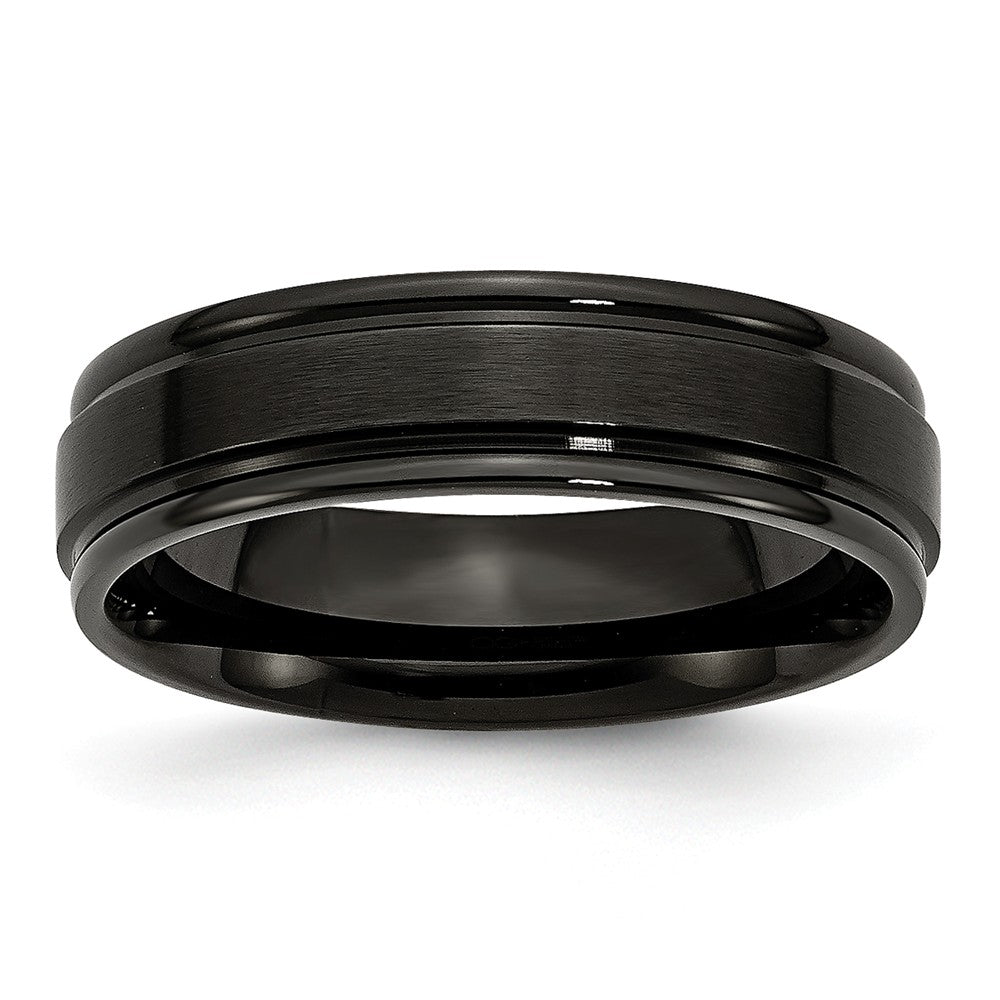 Stainless Steel 6mm Black IP-plated Brushed Center/Polished Edges Band