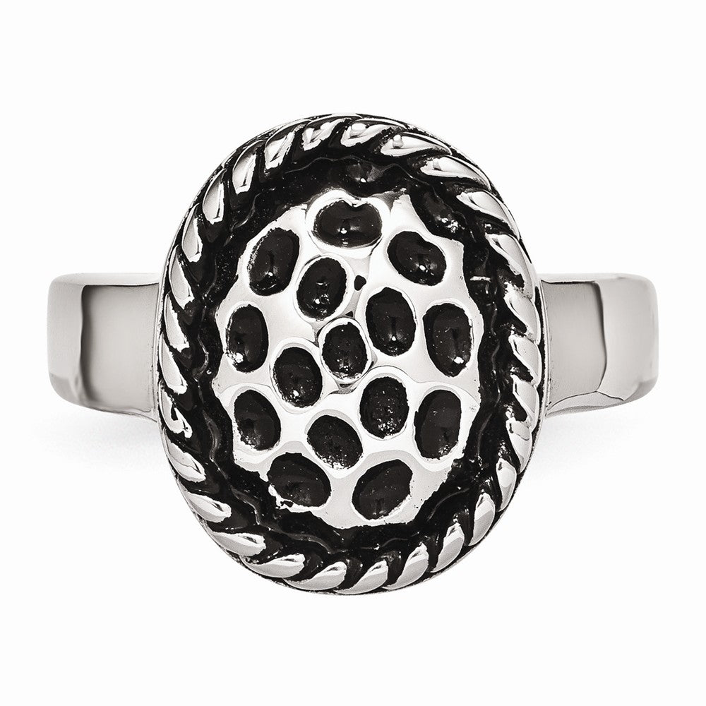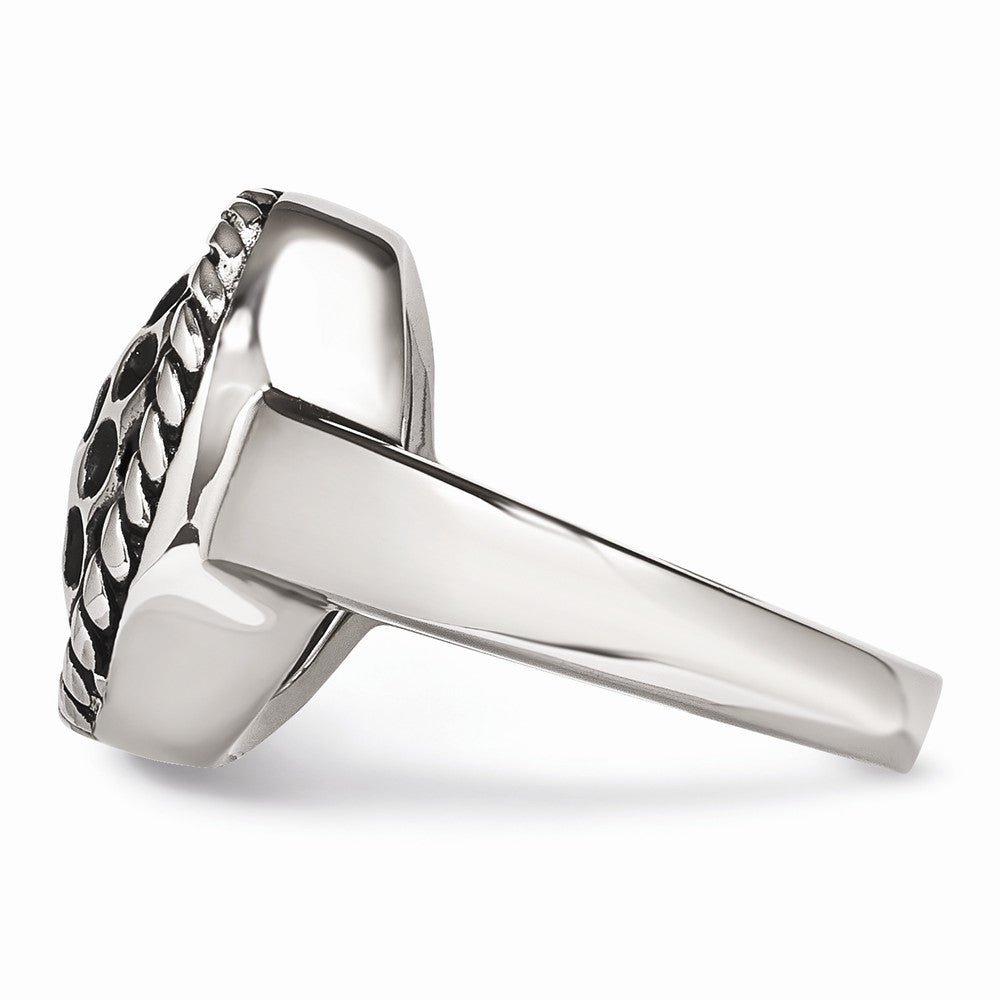 Don't miss out on adding this stunning accessory to your collection. Whether you're treating yourself or gifting someone special, this Stainless Steel Polished and Antiqued Ring has all the quality and style you've been looking for.