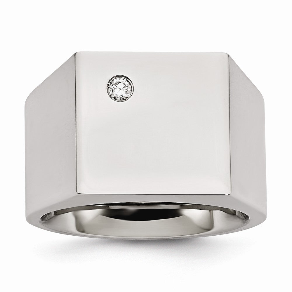 Sophia Jewelers Polished Stainless Steel CZ Signet Men's Ring
