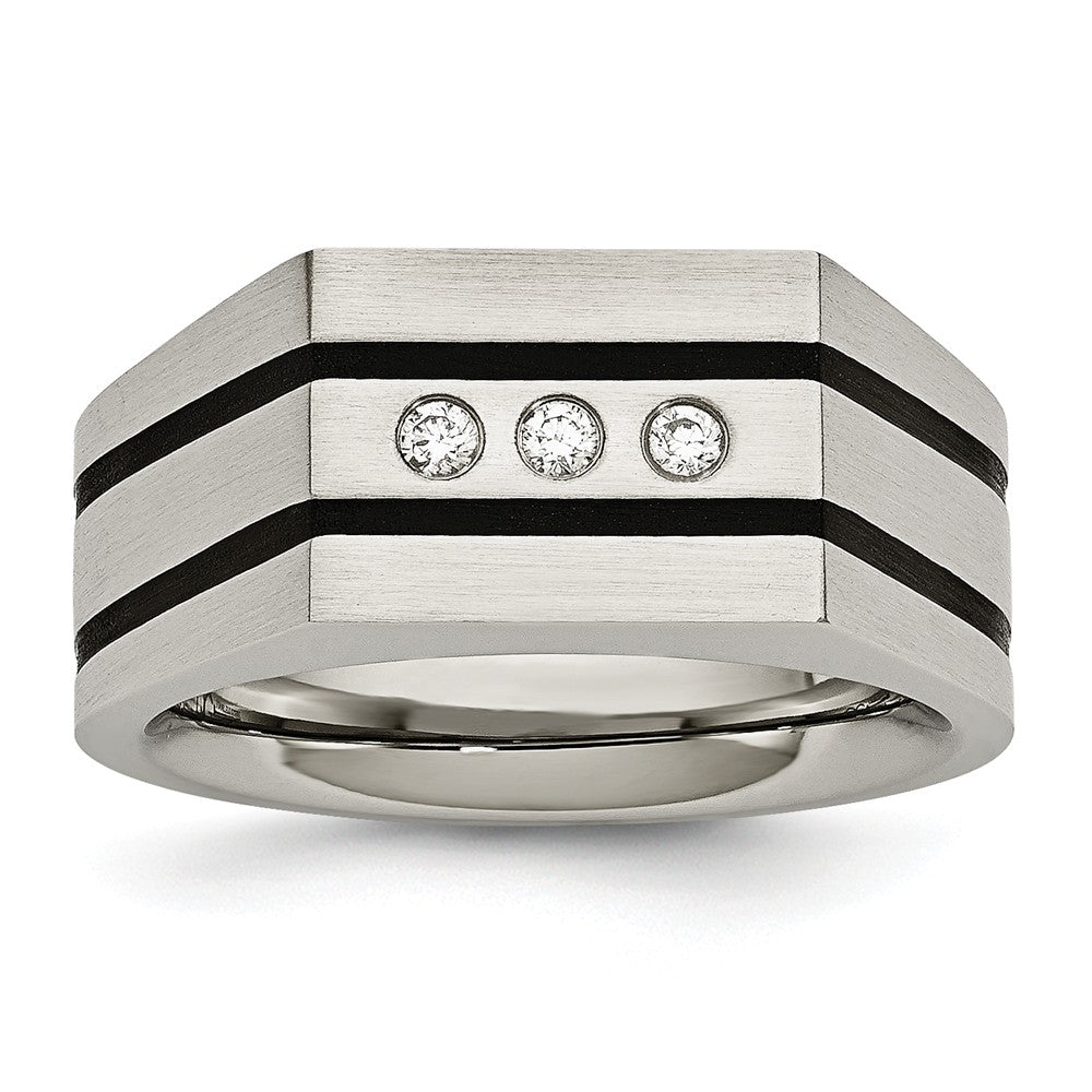 Stainless Steel Men's Ring with Brushed Black Finish and CZ Accents