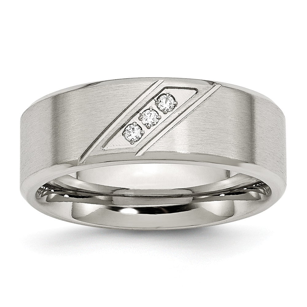 Stainless Steel Polished and Brushed CZ 8mm Beveled Edge Band
