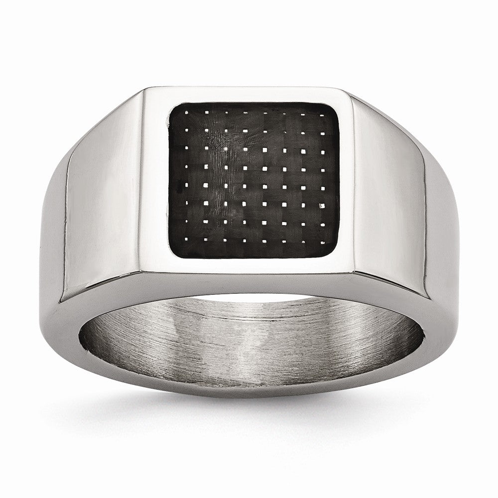 Elevate your everyday style or commemorate a significant moment with a sophisticated ring that reflects both modernity and tradition. The Stainless Steel Polished Signet Carbon Fiber Inlay Ring is more than just a piece of jewelry—it’s a symbol of strength, elegance, and individuality. Add this one-of-a-kind masterpiece to your collection today, and wear it with pride.
