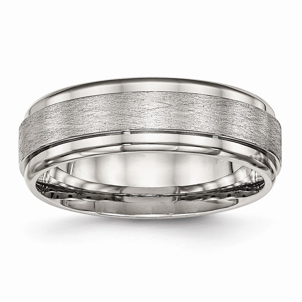 Stainless Steel Ridged Edge Wedding Band with Polished & Brushed Finish