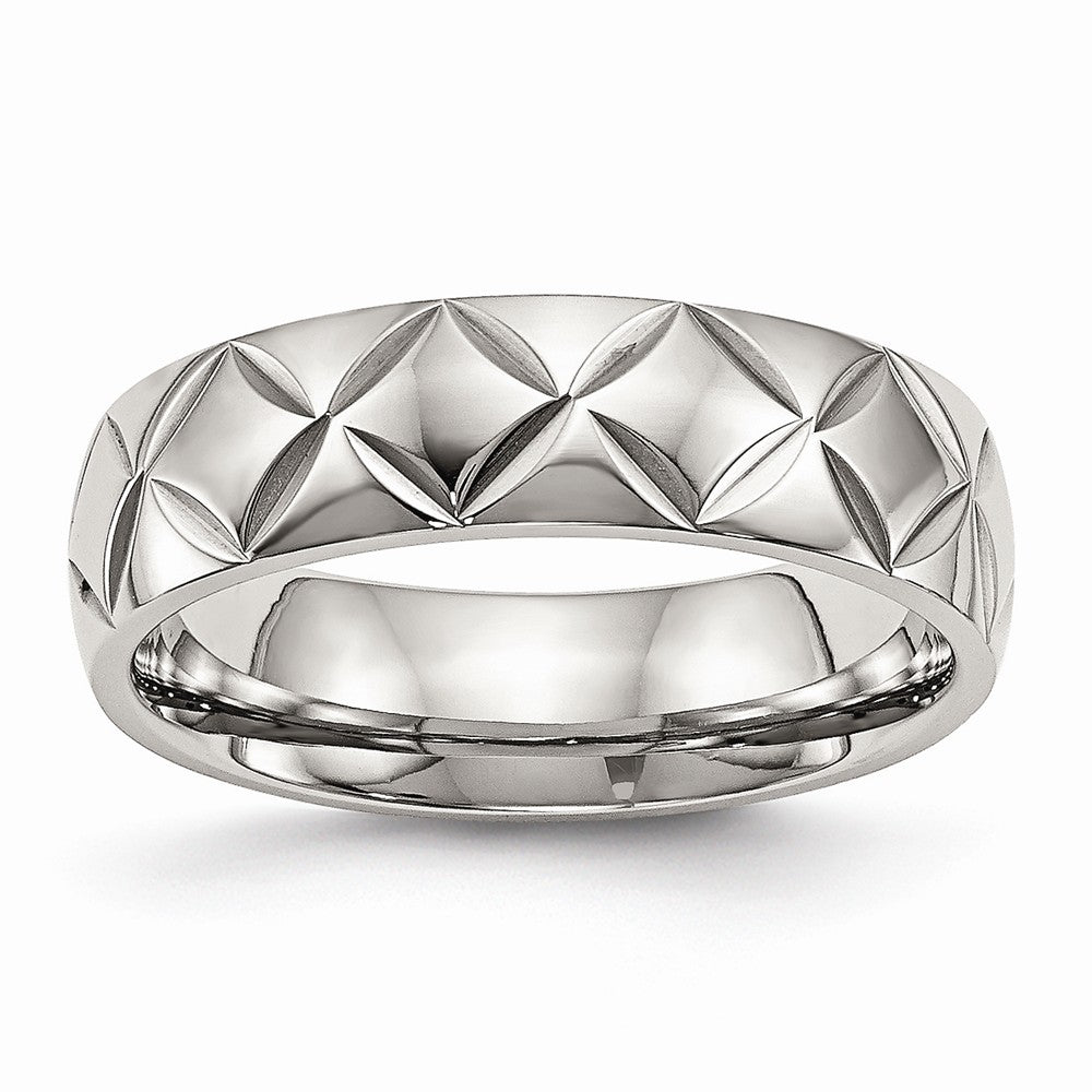 Sophia Jewelers Stainless Steel Polished Wedding Band with Modern Diamond Cut