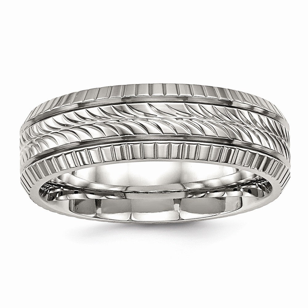 Sophia Jewelers Stainless Steel Polished Wedding Band with Grooved Texture