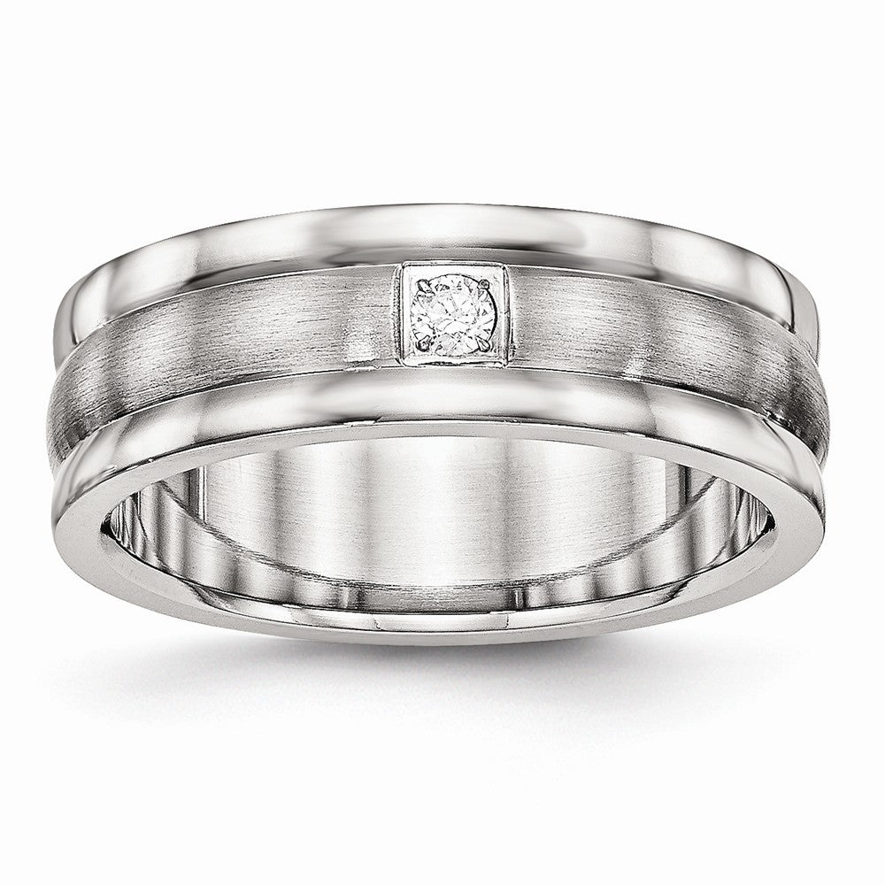 Sophisticated, sleek, and timelessly elegant, this Stainless Steel Polished and Brushed Grooved CZ Ring from Sophia Jewelers is the perfect blend of modern craftsmanship and classic design. Whether you're sealing a lifelong commitment or enhancing your jewelry collection, this stunning ring will take center stage with its radiant Cubic Zirconia (CZ) accent and refined finish.