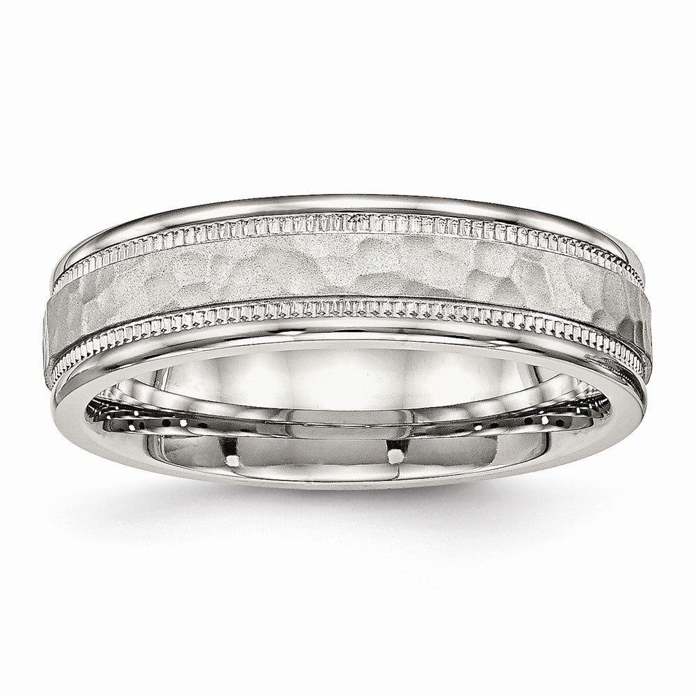Stainless Steel Polished Hammered and Grooved 6.00mm Band
