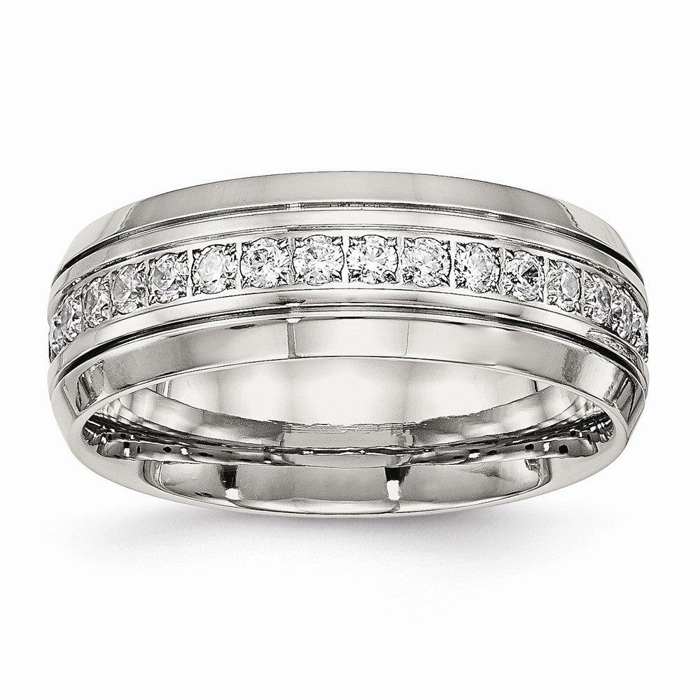 Stainless Steel Polished Half Round Grooved CZ Ring: