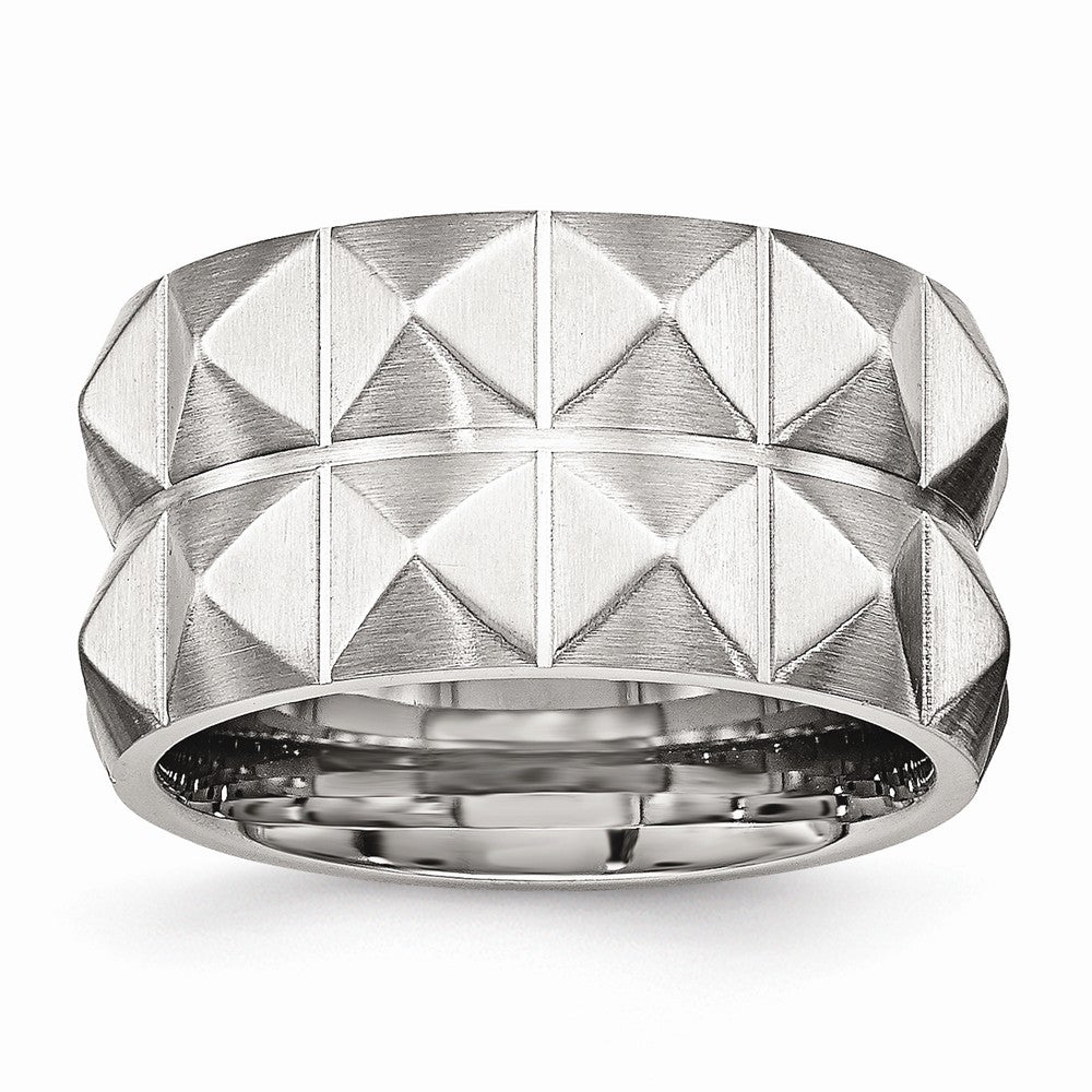 Elevate your style and celebrate timeless love with the sleek, sophisticated charm of our Stainless Steel Brushed Grooved 12.00mm Band. This stunning ring combines modern design with enduring quality, making it an ideal choice for wedding bands or a distinguished statement piece. Crafted from durable stainless steel, the band features a sleek brushed finish and subtle grooves, offering a perfect balance between modern minimalism and masculine elegance.