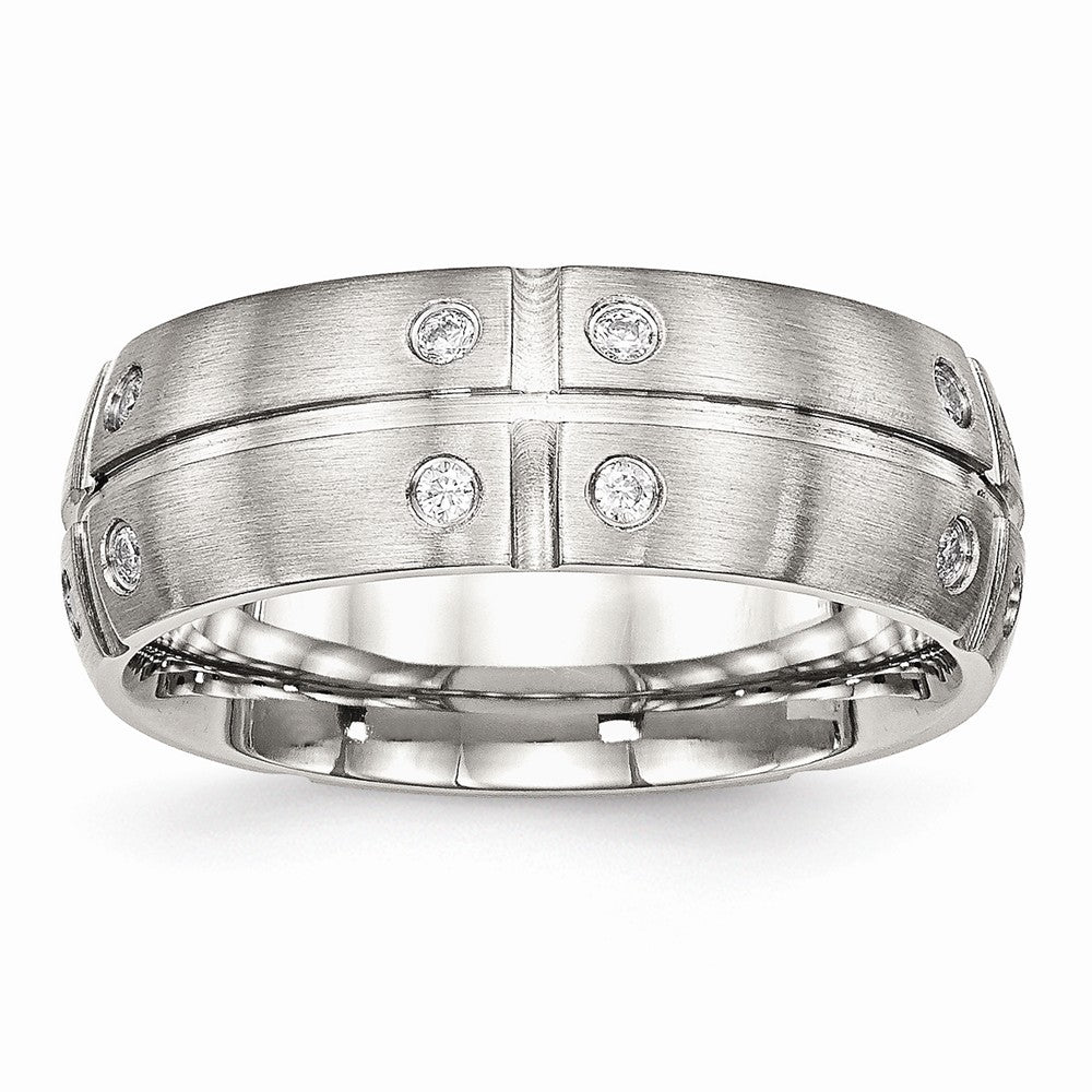 Stainless Steel Brushed Half Round/Grooved CZ Ring — A Timeless Statement of Elegance