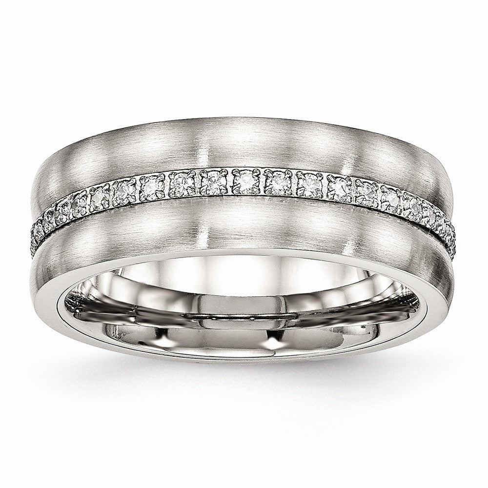 Let this Stainless Steel Brushed and Polished CZ Ring be a reflection of your style and commitment. Whether you’re planning your big day or simply expanding your collection, this ring is designed to be admired as much as it's meant to be worn.
