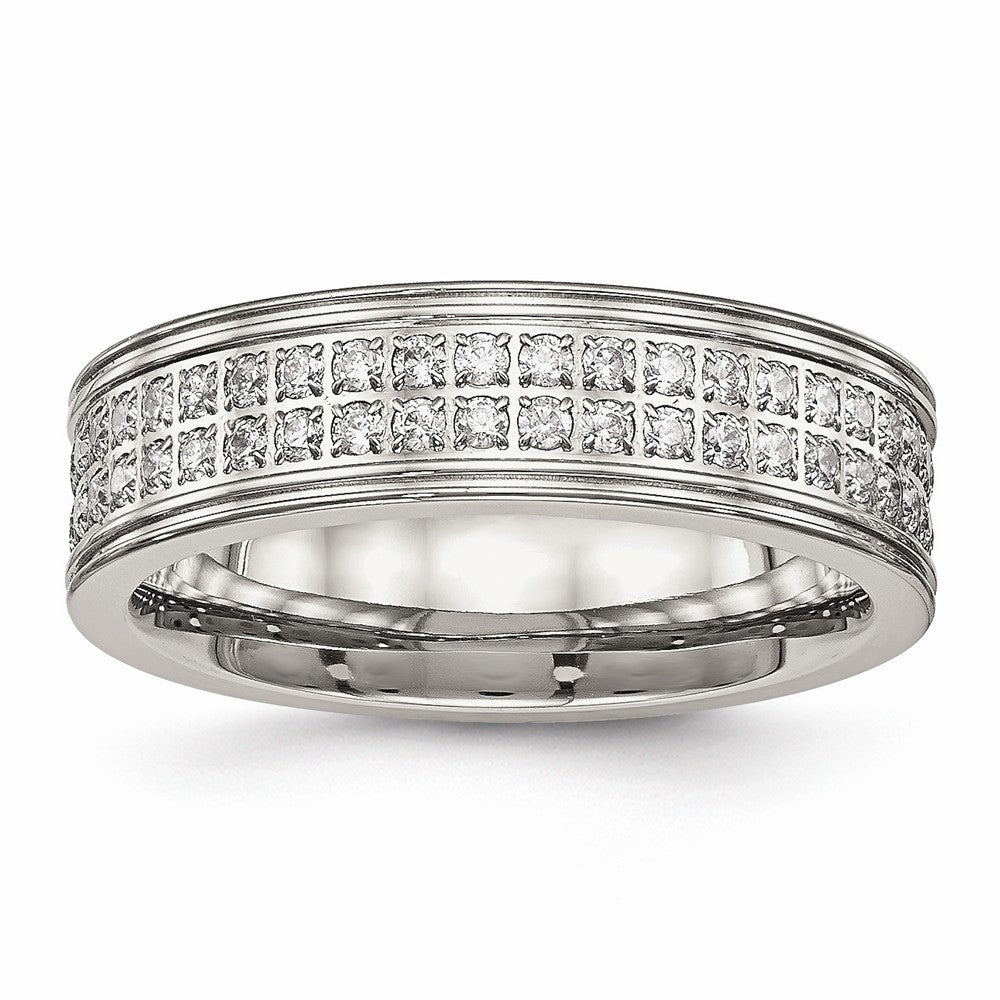Sophia Jewelers Stainless Steel Polished Wedding Band with CZ Sparkle