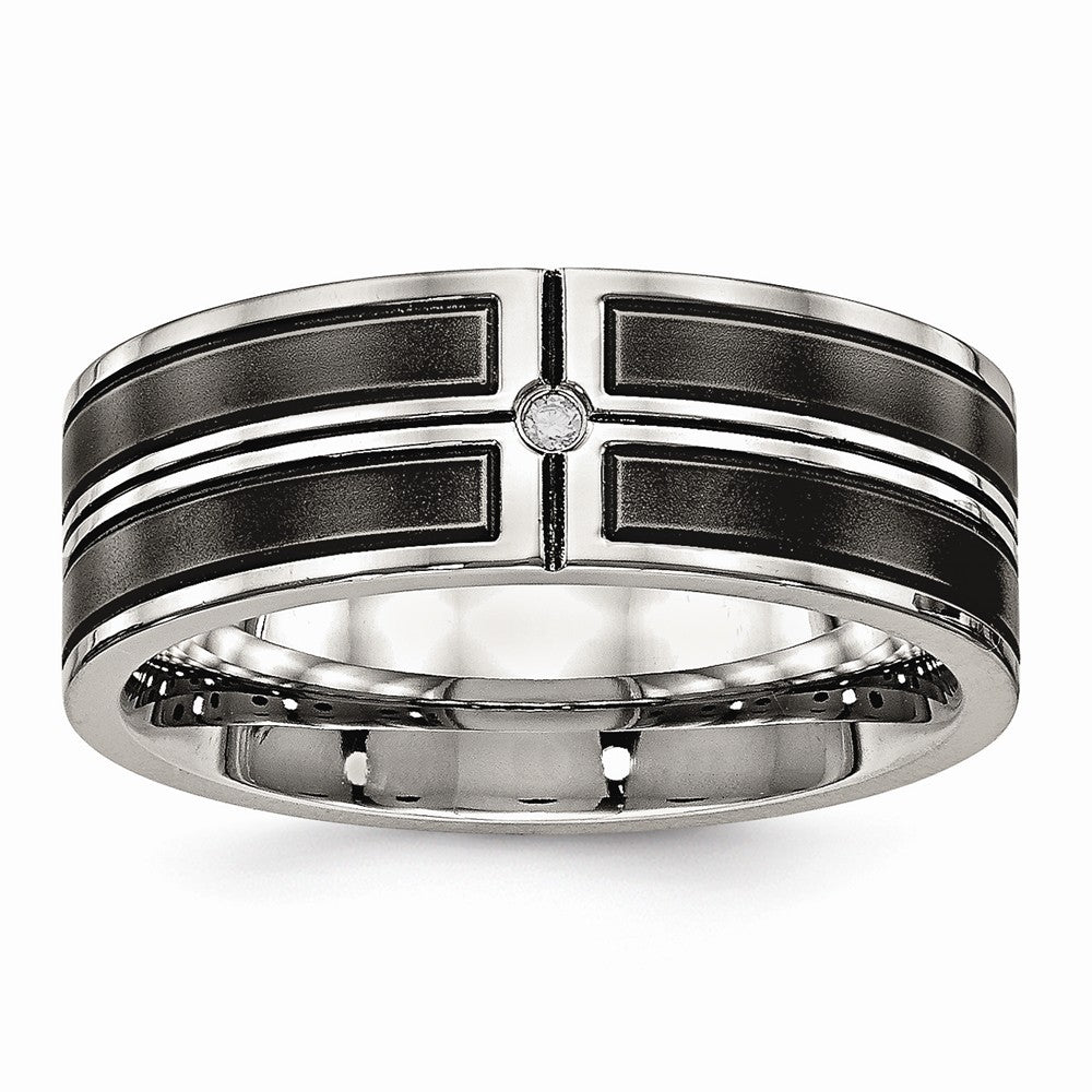 Refined in design and bold in appearance, this Stainless Steel Brushed and Polished Black IP Plated Cubic Zirconia (CZ) Band is the perfect blend of luxury and style. Crafted for those who appreciate sophistication with a modern edge, this striking wedding band adds a touch of class to any ensemble. Meticulously polished and brushed to perfection, its black ion-plated finish contrasts beautifully with the sparkling cubic zirconia accent, delivering unmatched elegance for both daily wear and special occasions.