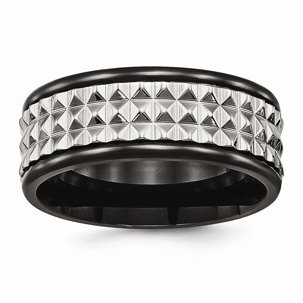 Stainless Steel Black IP Wedding Band with Polished Textured Finish
