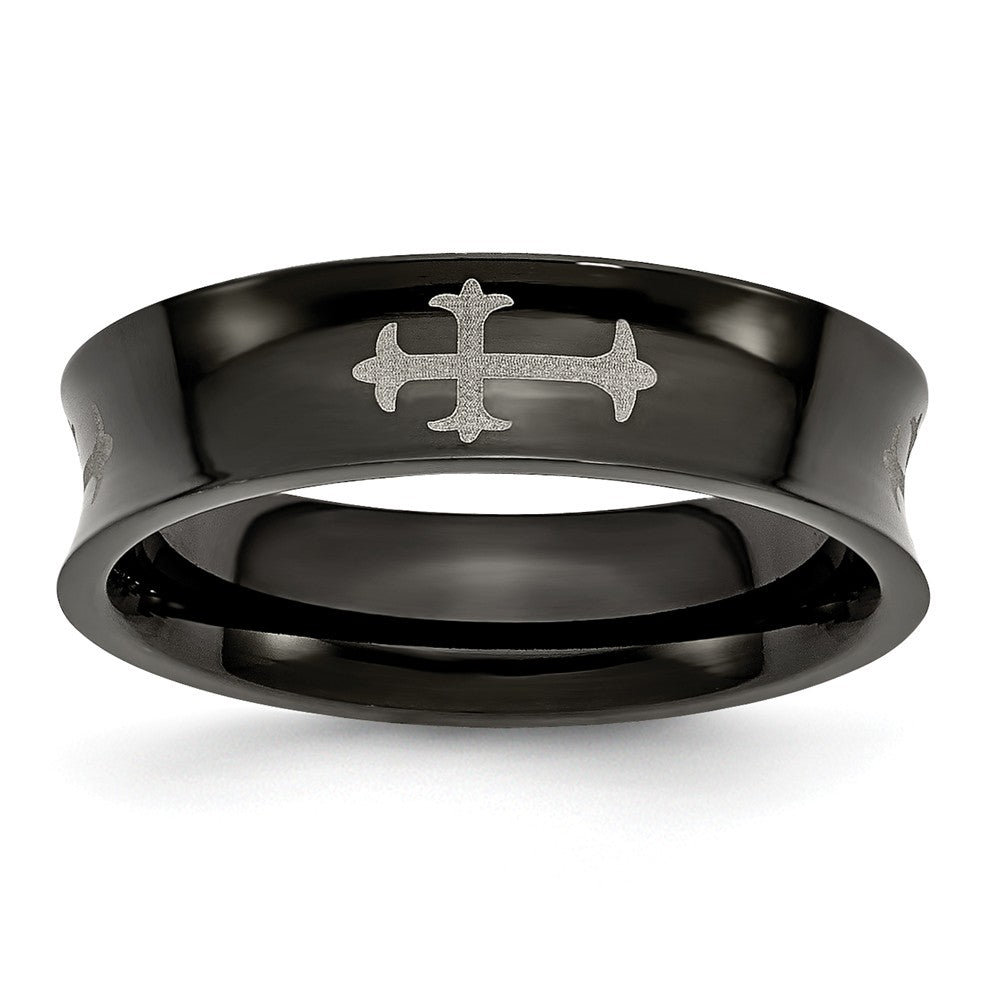 Stainless Steel Concave Crosses & Black IP-Plated 6mm Band