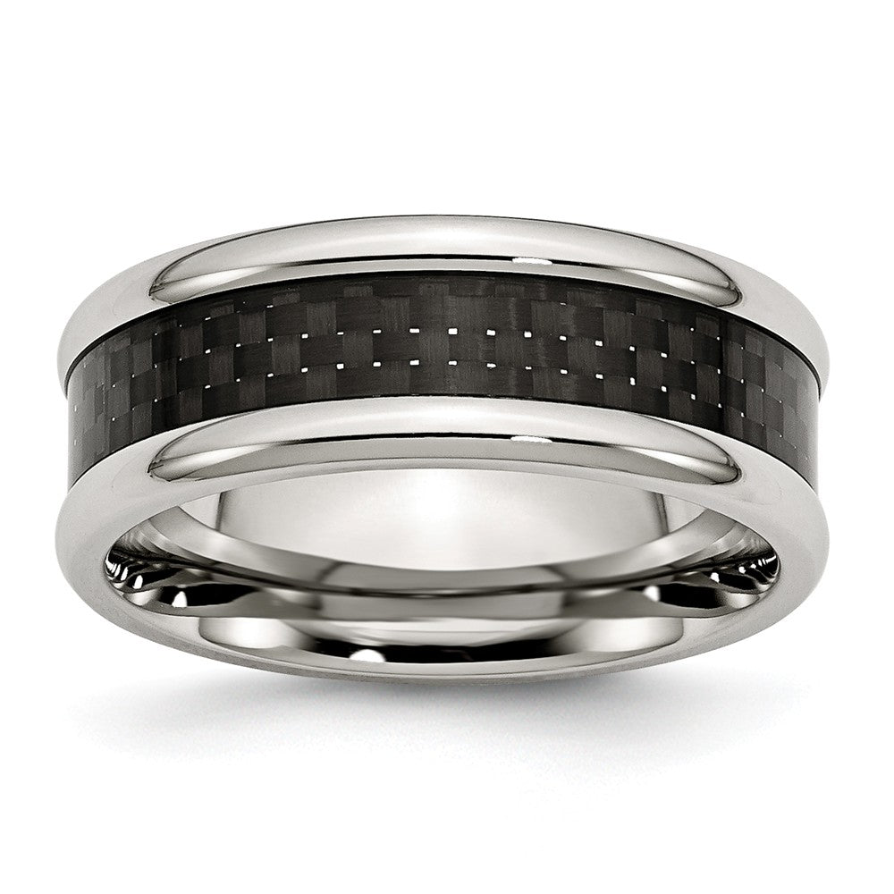 A bold statement of style and elegance, the Stainless Steel Polished Band with Black Carbon Fiber Inlay embodies the perfect balance of modern design and timeless appeal. Crafted from high-quality stainless steel and featuring a polished finish, this 8mm wedding band is adorned with a striking black carbon fiber inlay, giving it a unique and refined look for the contemporary individual.