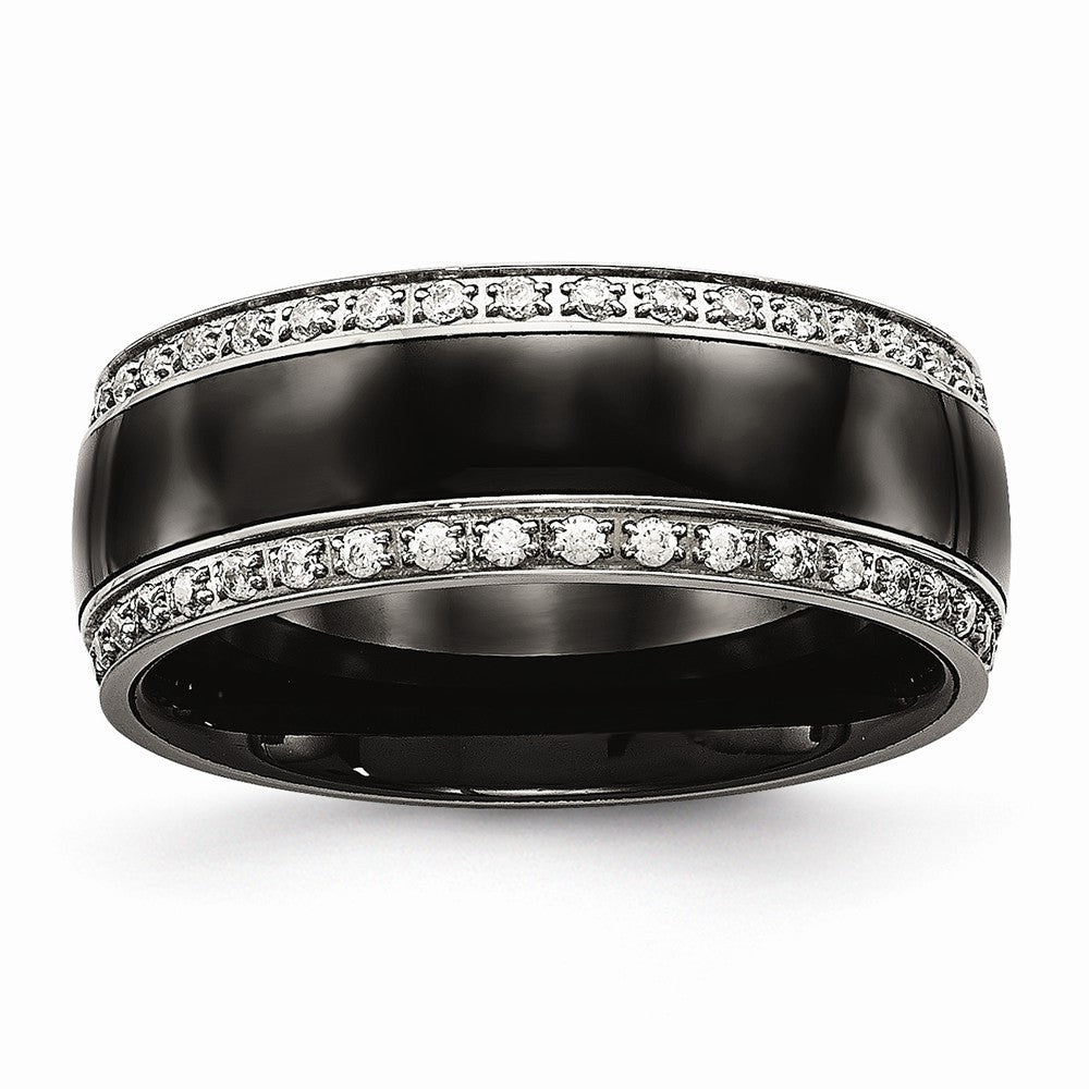 Stainless Steel Polished Black Ceramic CZ Ring – A Striking Symbol of Timeless Elegance