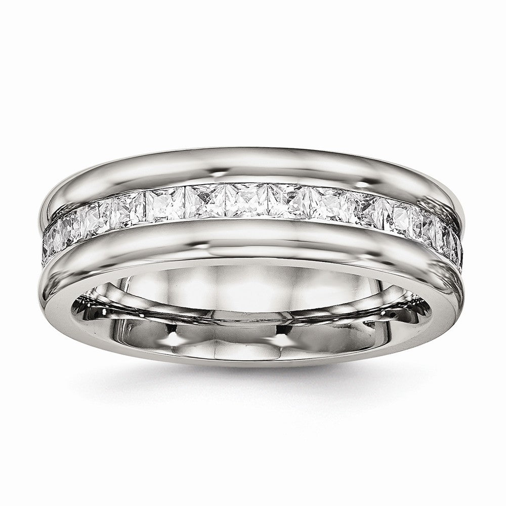 Elevate your style with our beautifully crafted Stainless Steel Polished Ring, featuring a striking centerpiece of Cubic Zirconia (CZ) stones. Uniting timeless elegance with modern durability, this ring is the perfect harmony of sophistication and practicality. Whether you're searching for a stunning wedding band or simply a versatile, eye-catching piece, this ring is designed to impress.