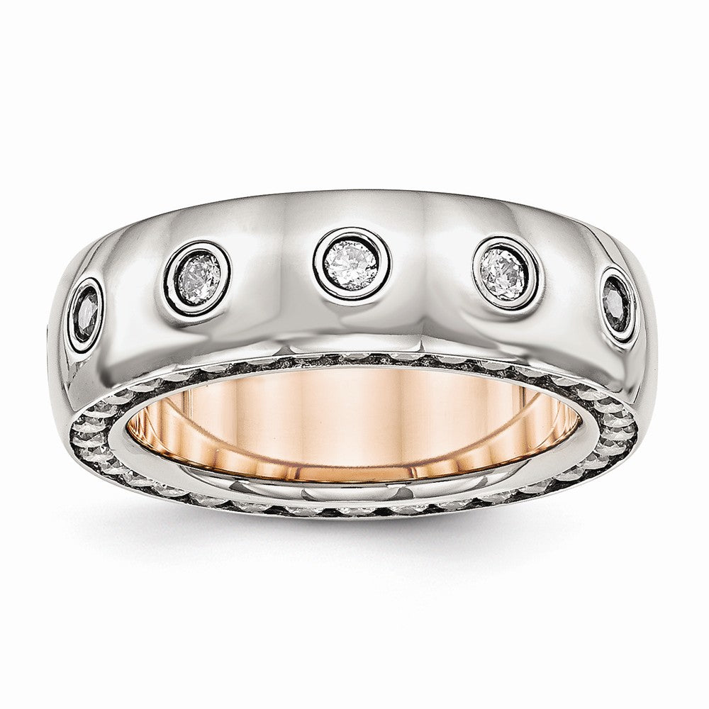 Stainless Steel Polished Rose IP Plated CZ Inlay Ring