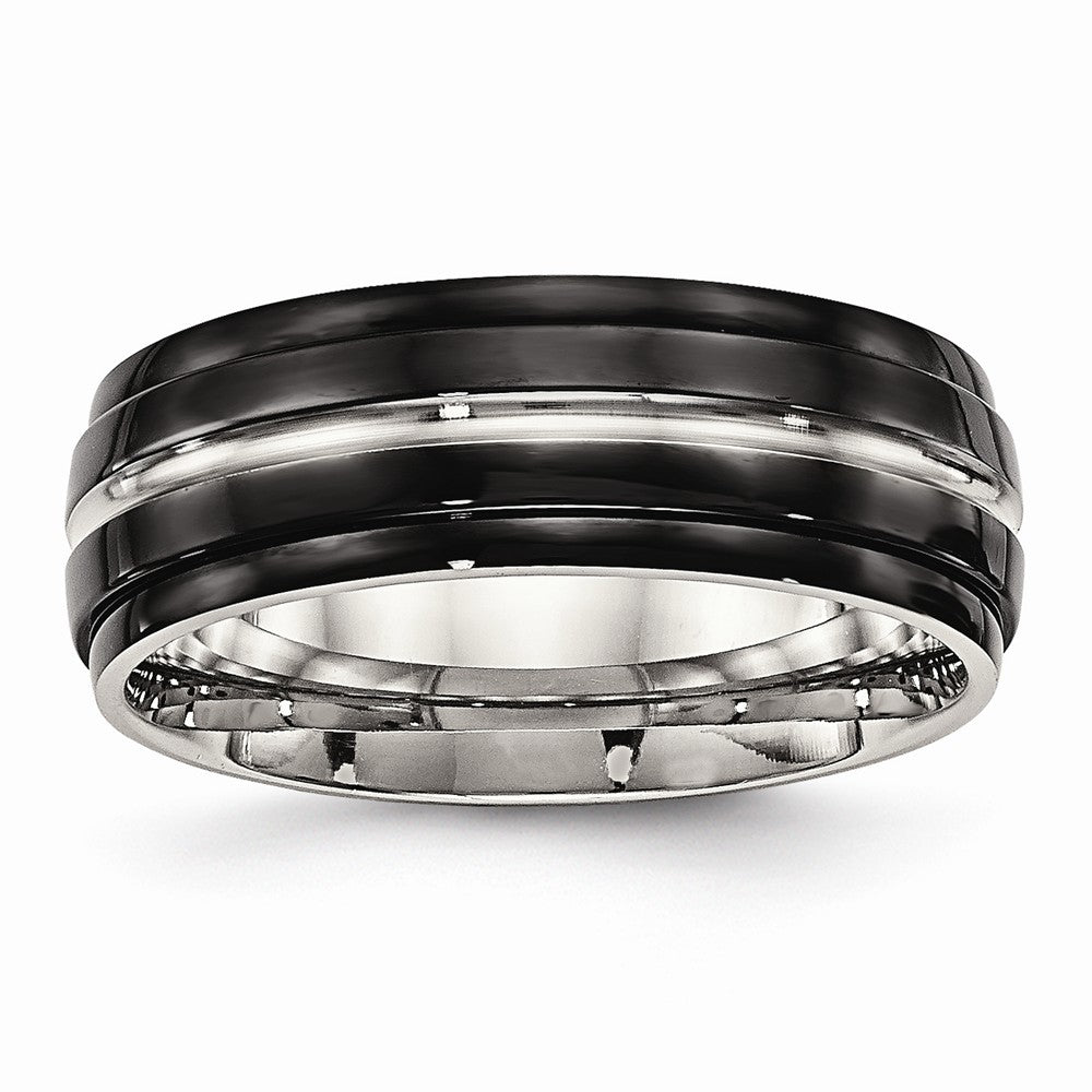 Sophia Jewelers Stainless Steel Black IP Wedding Band with Ridged Edge