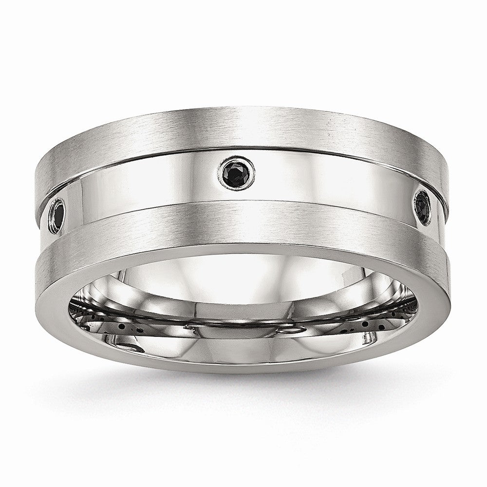 Add this versatile, stunning piece to your collection today. Whether it’s to mark a special occasion or simply to flaunt your personal style, the Stainless Steel Brushed/Polished Black CZ Ring is the perfect accessory. Click 'Add to Cart' now to make it yours!