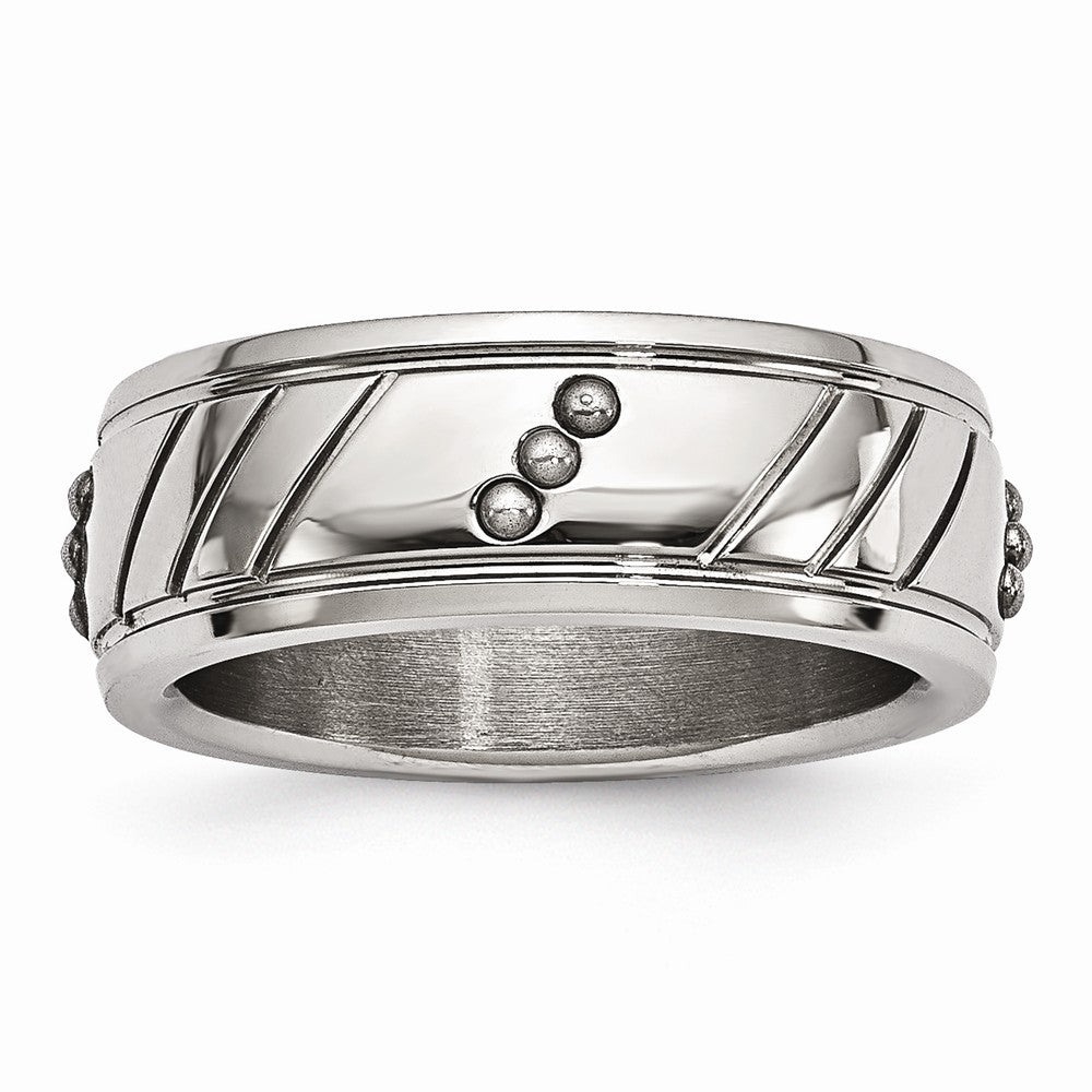 Don’t miss out on the chance to own this stunning, one-of-a-kind ring. Whether it's for your big day or just because, add the Stainless Steel Polished Beaded Grooved Ring to your cart today and let it be a constant reminder of your enduring style and love.