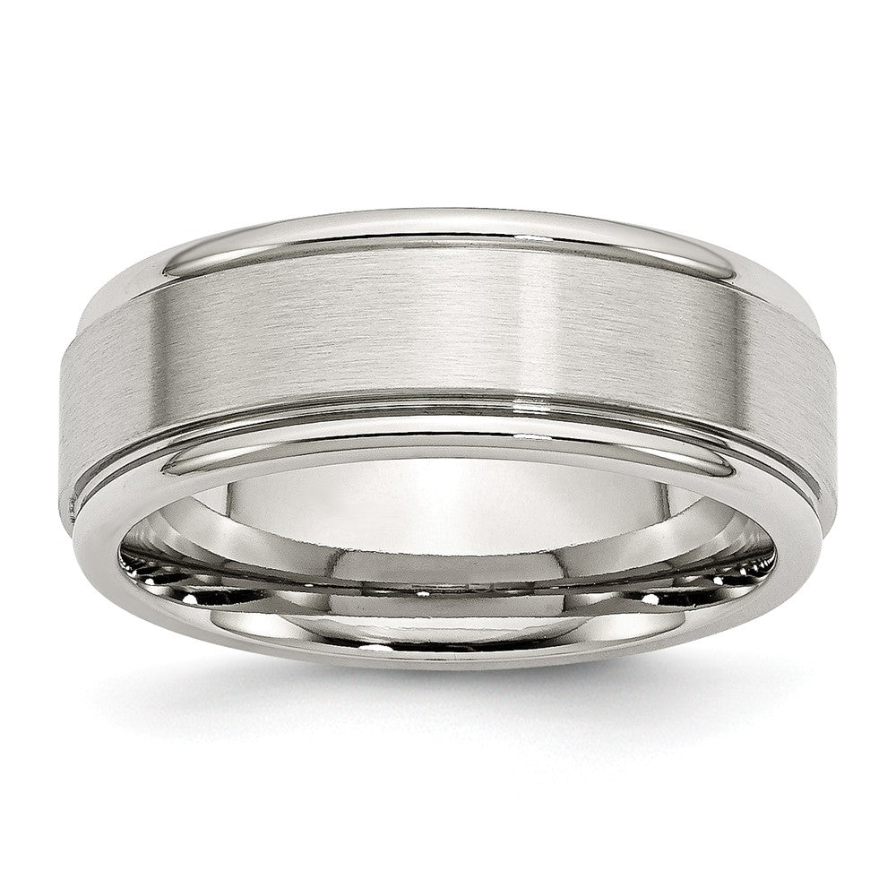 Stainless Steel Ridged Edge 8mm Brushed and Polished Band Elegance meets precision in this Stainless Steel Ridged Edge 8mm Brushed and Polished Band, designed to symbolize your enduring commitment in...
