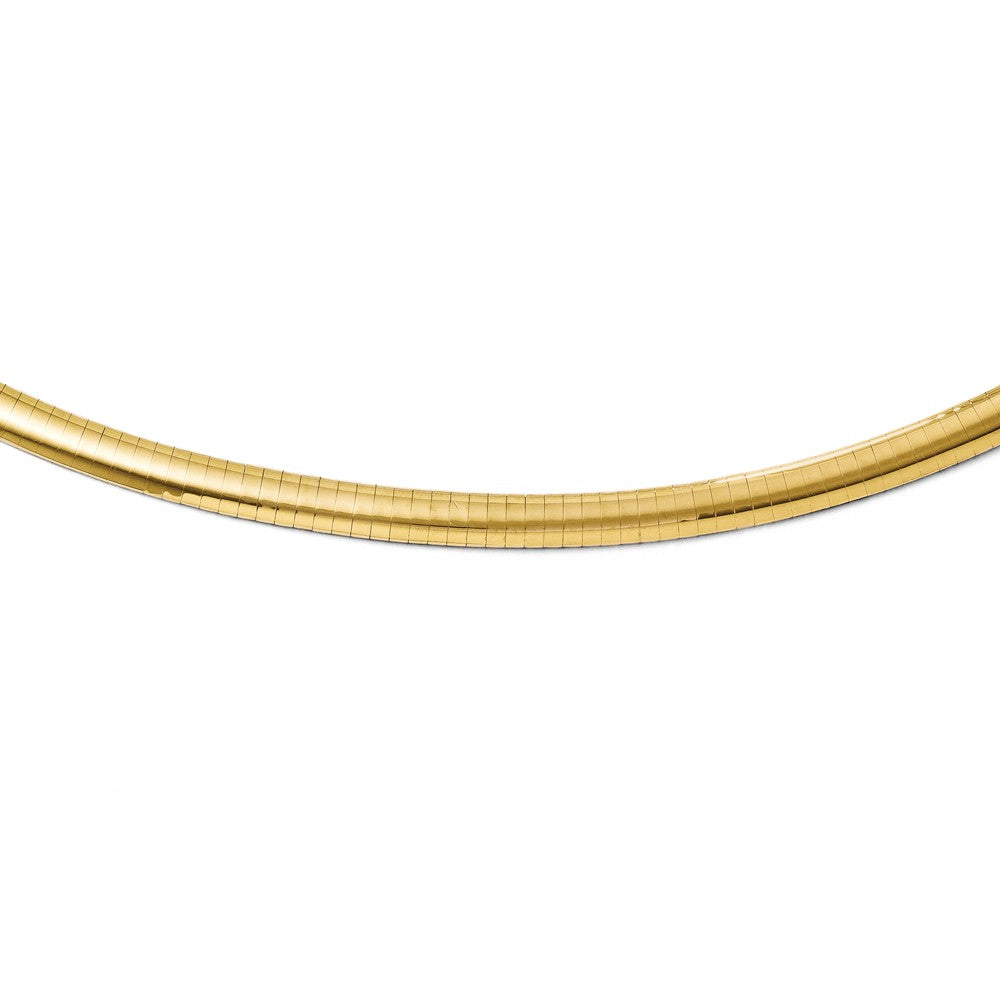 Transform your jewelry collection with the refined beauty of Leslie's 14K Yellow Gold 6mm Domed Omega Necklace. Crafted to perfection and designed for the sophisticated woman, this piece seamlessly blends classic elegance with contemporary appeal.