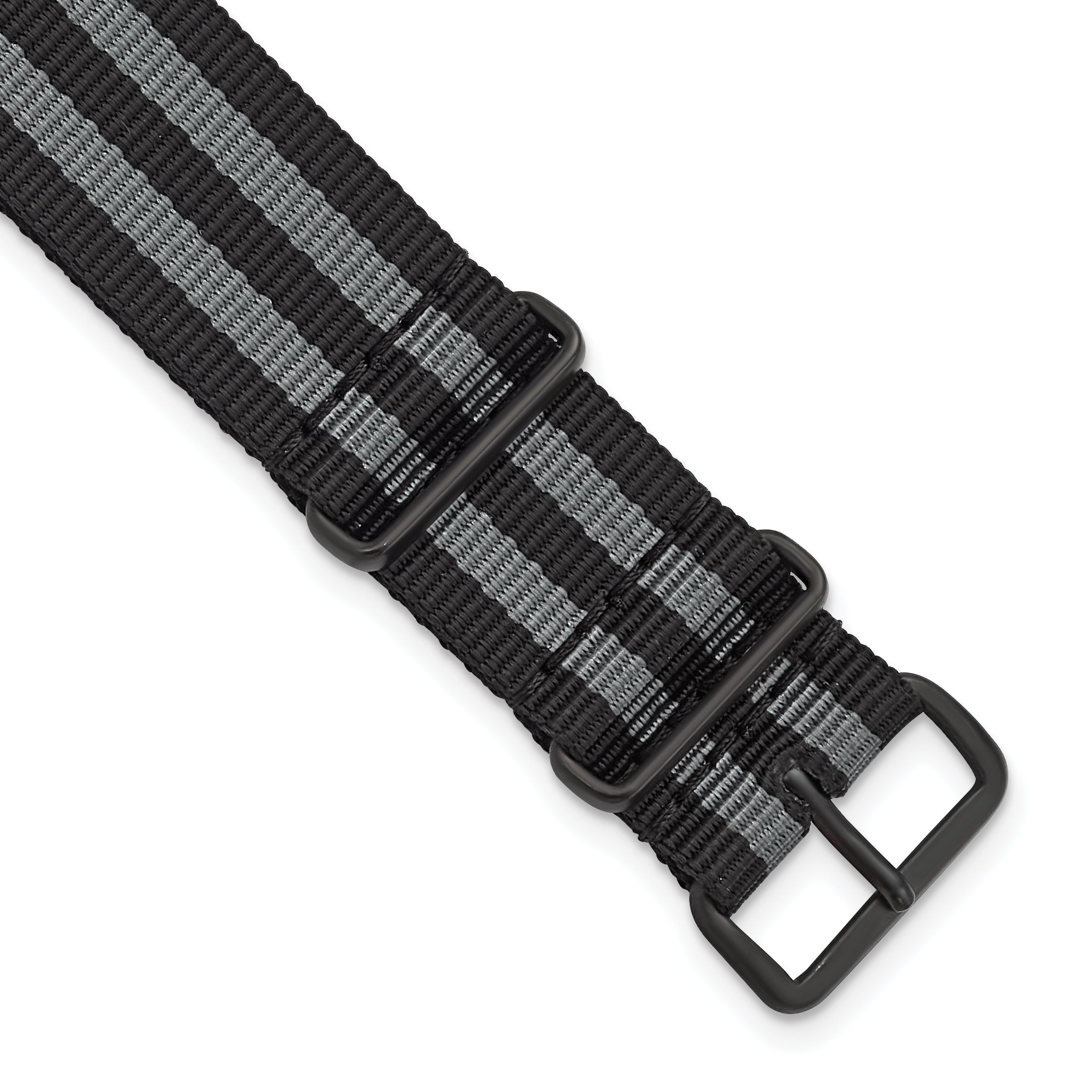18mm One-Piece Black and Grey Striped Military Ballistic G10 Nylon with Black PVD-plated Buckle 10.75 inch Watch Band