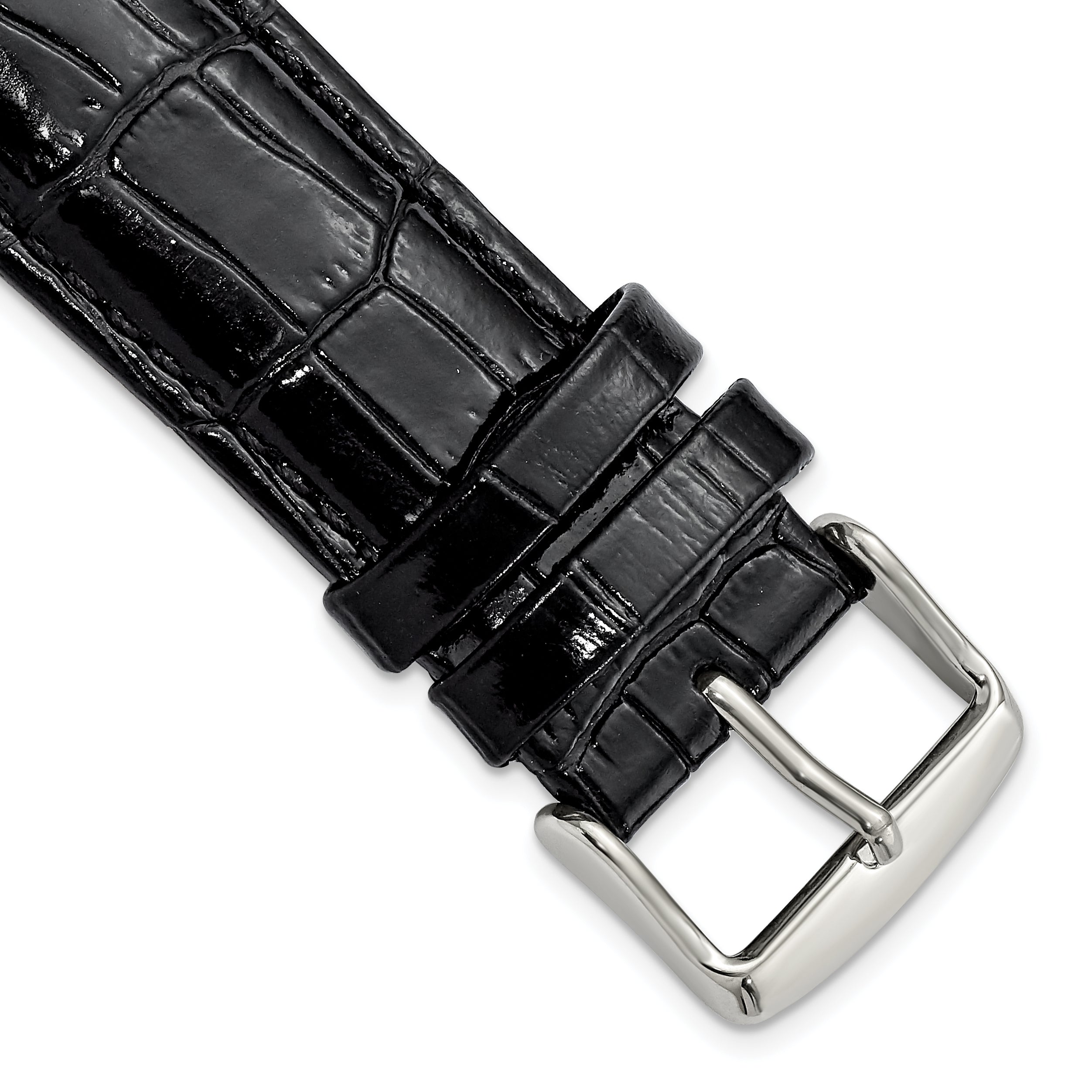 22mm Short Black Crocodile Grain Chronograph Leather with Silver-tone Buckle 6.75 inch Watch Band