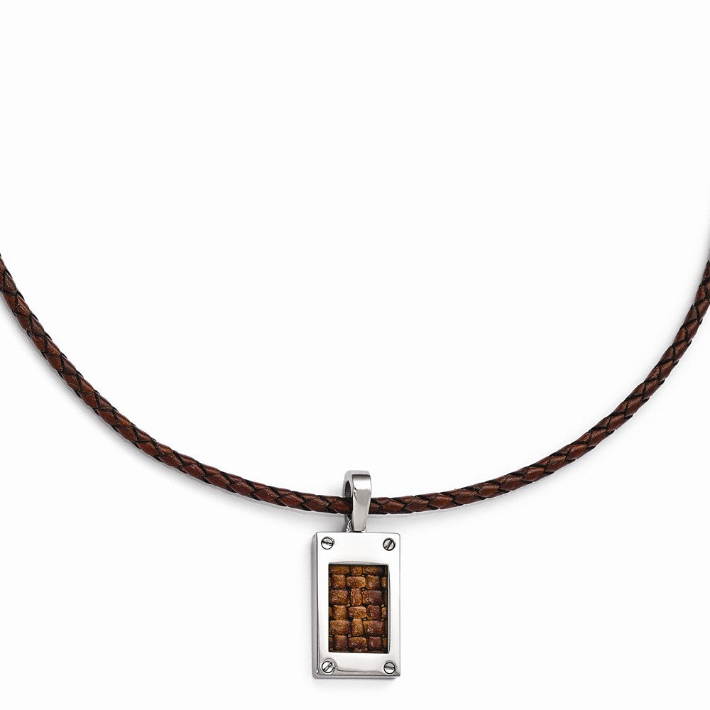 Edward Mirell Titanium Necklace with Brown Leather Insert & Leather Cord – A Timeless Fusion of Strength and Style