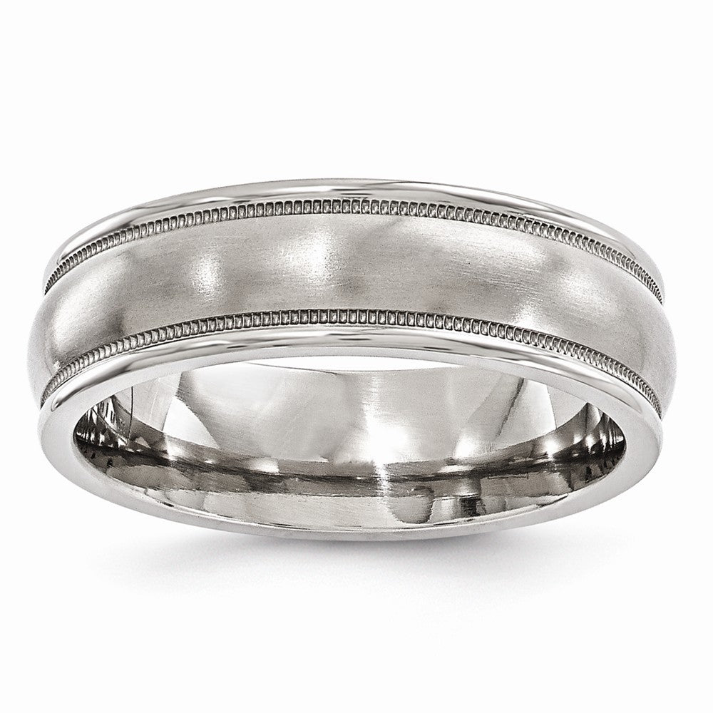 Discover the perfect fusion of strength, elegance, and sophistication. The Edward Mirell Titanium Brushed & Polished Milgrain 6.5mm Band is more than just a ring—it's an enduring symbol of your commitment and style. Crafted with precision using lightweight, strong titanium, this handsome wedding band features a sleek brushed finish with polished accents, adding to its natural appeal. The intricate milgrain edging design defines the outer rim, giving the ring a timeless, luxurious texture that subtly reflects light.