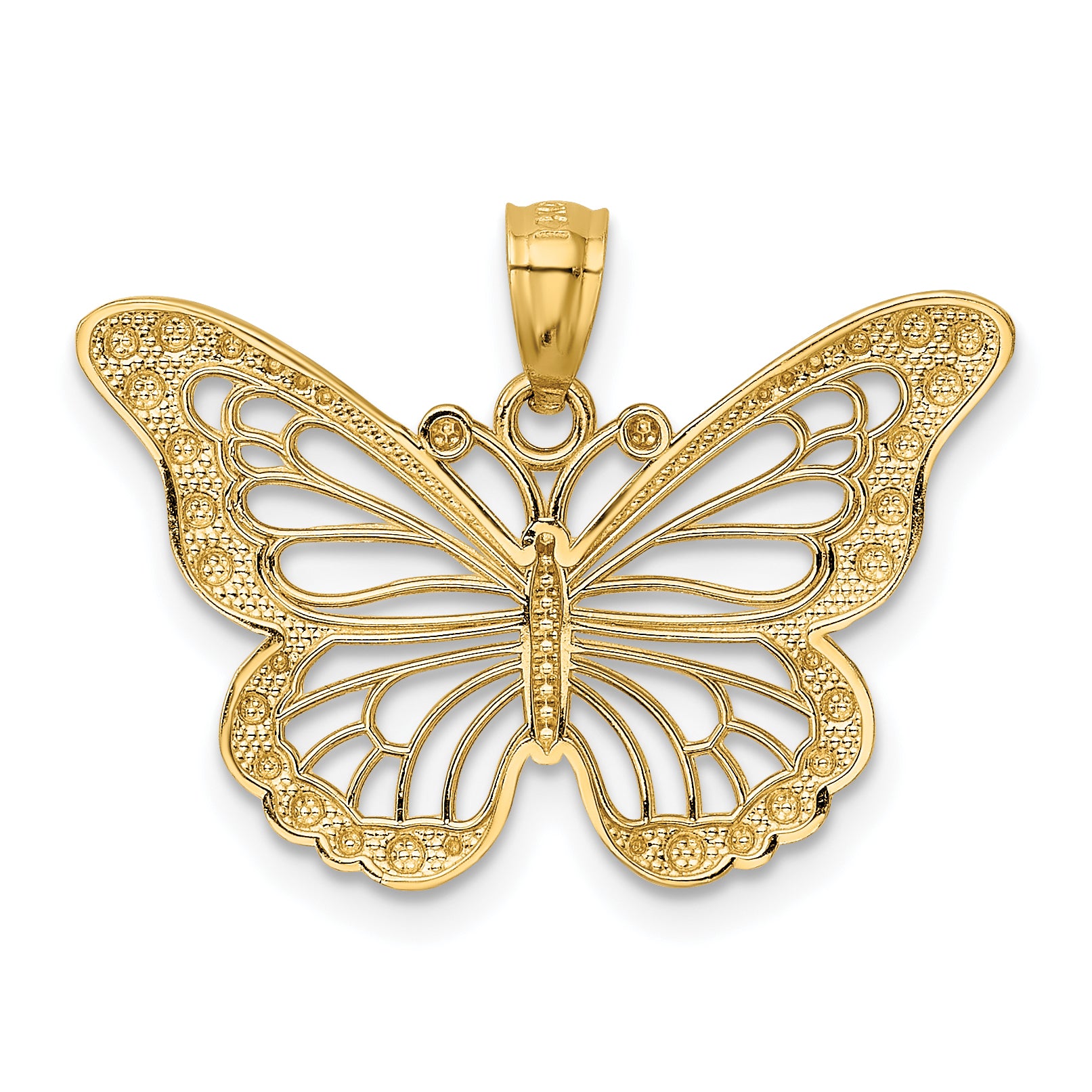 14k Gold & Rhodium Diamond-Cut Open Butterfly Pendant: A Symbol of Grace and Transformation