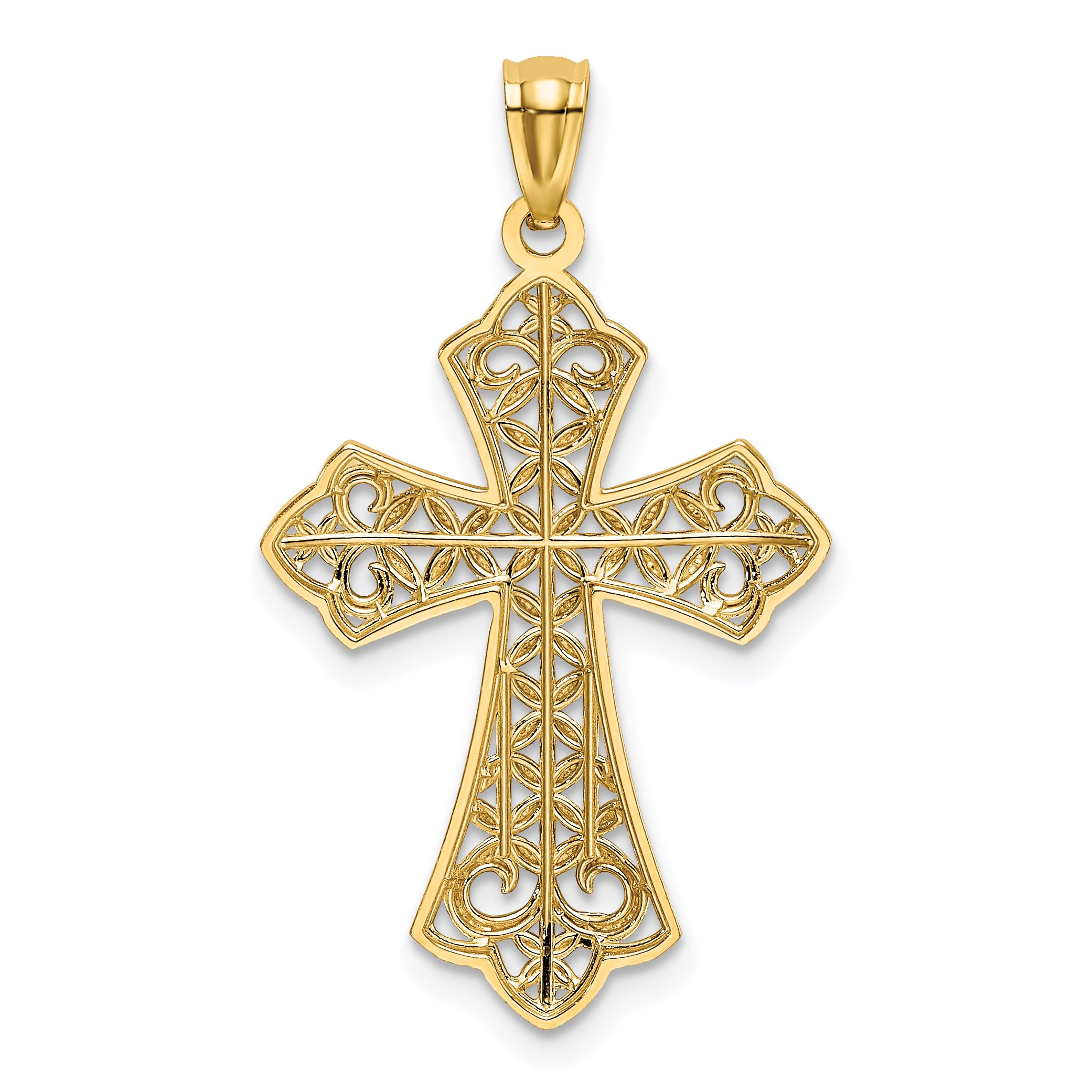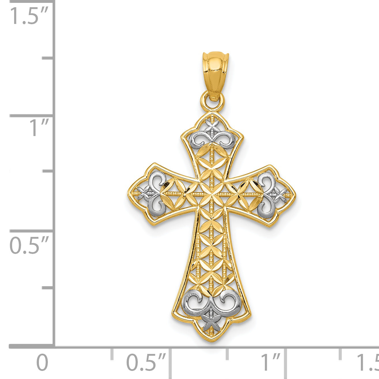 14k Gold w/ Rhodium Polished Diamond-Cut Filigree Cross Pendant