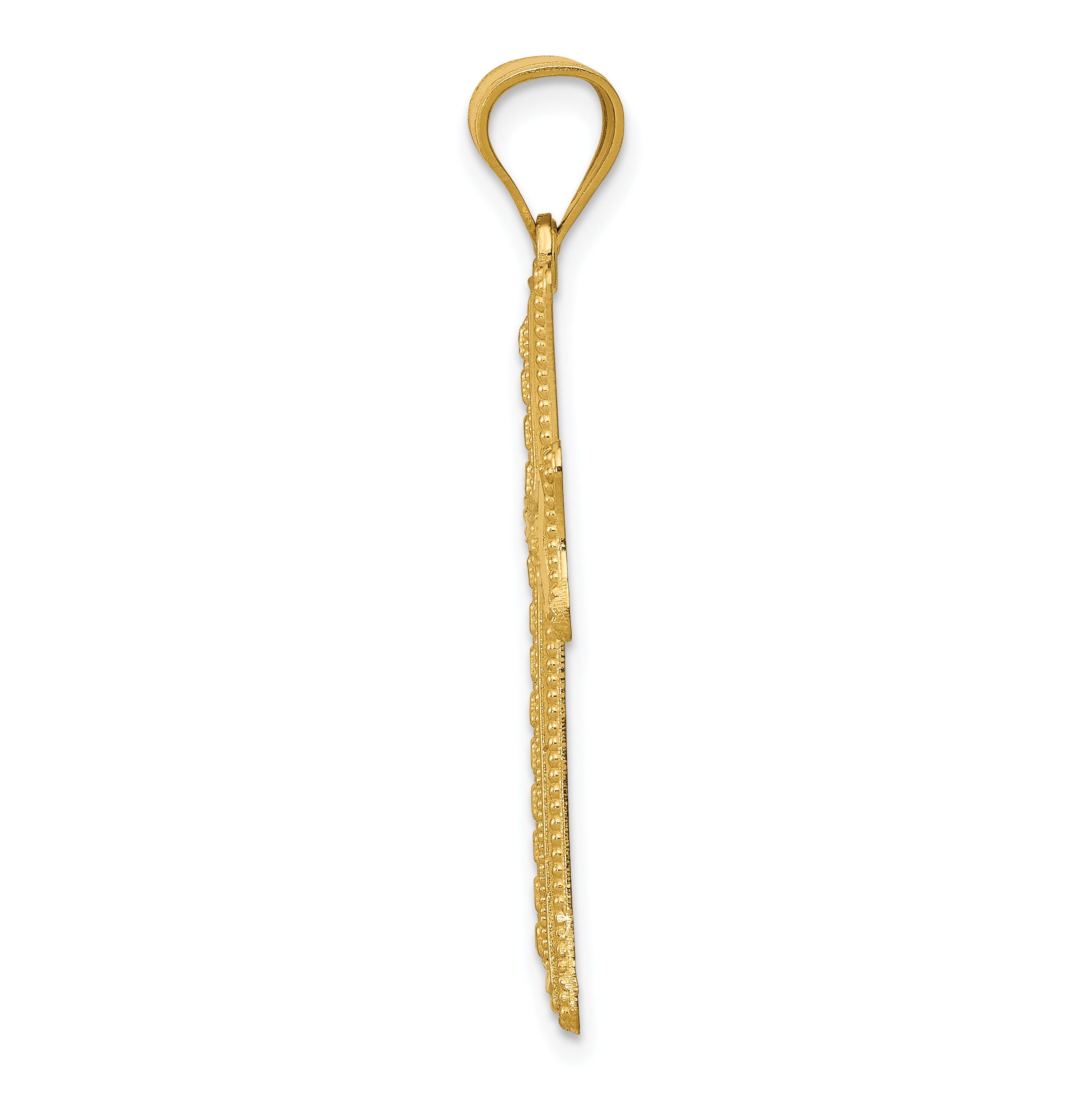 Embrace both faith and fashion with this exquisite 14k Diamond-Cut Cross Pendant. Crafted from fine 14k yellow gold, this pendant gracefully combines the brilliance of a diamond-cut texture with a stunning, timeless design—in perfect harmony for any occasion. Whether worn as a cherished symbol of devotion or a stylish accessory, this pendant radiates elegance and meaning.