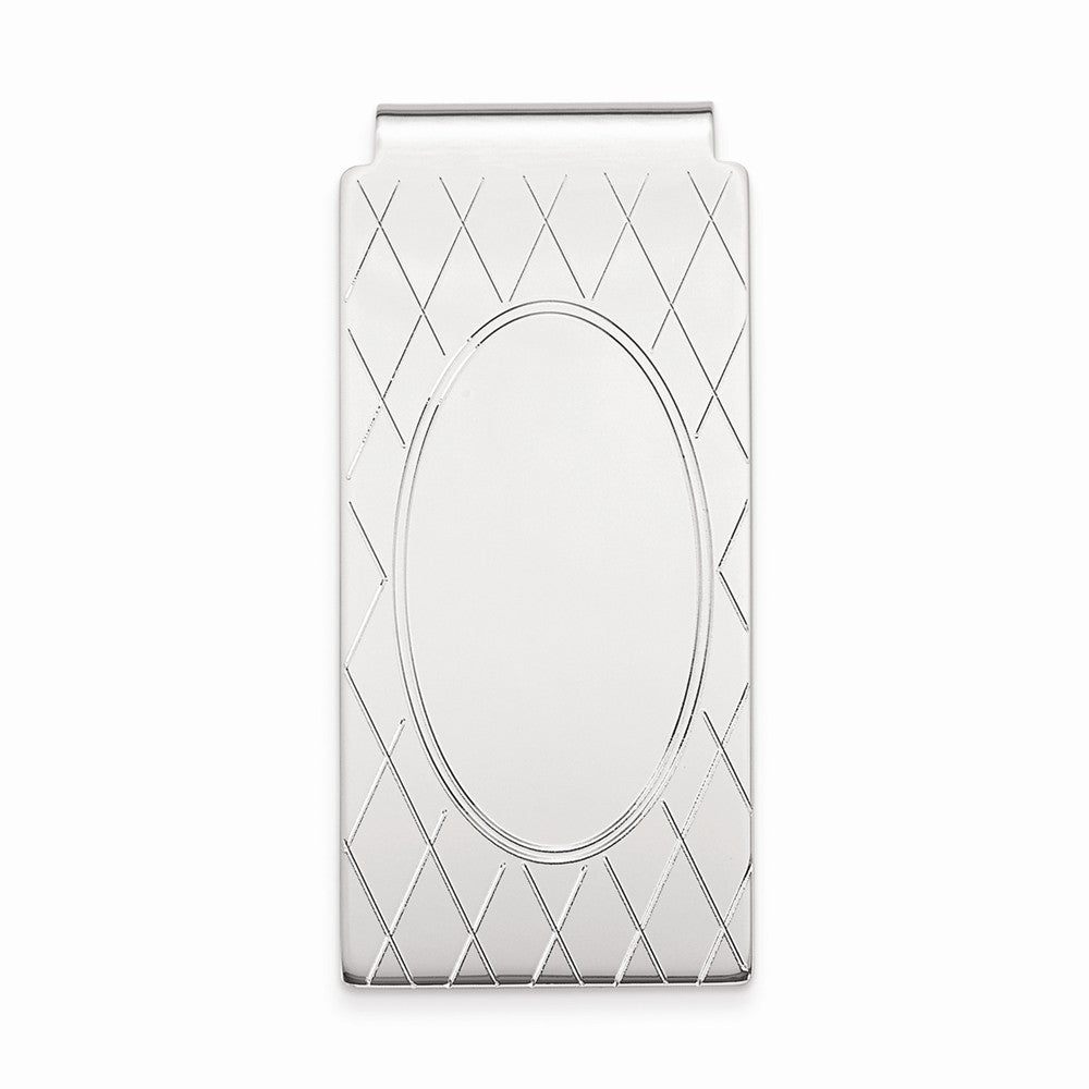Crafted for the man who appreciates elegant design without compromising utility, the Rhodium-plated Kelly Waters Money Clip with Criss Cross & Oval Center is the ideal accessory for adding a touch of refinement to your everyday look. Sophisticated, durable, and sleek—this money clip stands out as a staple piece in any gentleman's accessory collection.