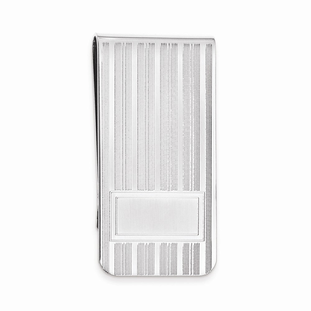 Rhodium-Plated Kelly Waters Money Clip with Lines and Bottom Rectangle