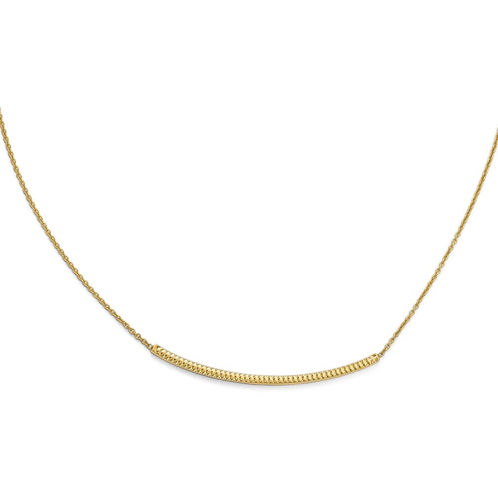 Step into luxury with Leslie’s 14K Yellow Gold Polished Diamond-Cut Bar Necklace—an exquisite piece that embodies the perfect blend of classic allure and contemporary style. Carefully crafted from 14K yellow gold, this semi-solid necklace offers a radiant polished finish that beautifully complements any outfit. Whether you're dressing up for a special evening or adding a refined touch to your everyday look, this 2-inch extension necklace adjusts to hang effortlessly with style and grace.