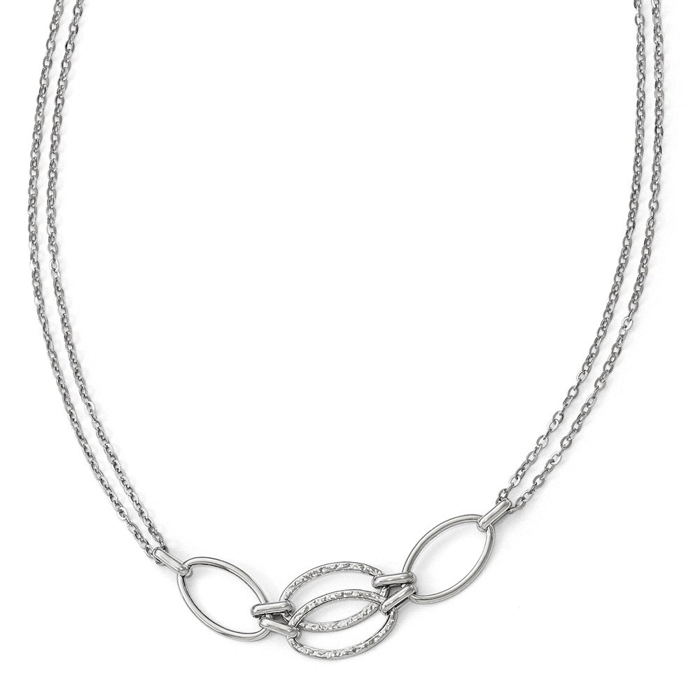 Indulge in timeless luxury with this exquisite 14K White Gold Polished Double Strand Link Necklace from Leslie's. Handcrafted with meticulous attention to detail, this necklace beautifully combines sophistication with modern design. The polished finish and rhodium plating add a brilliant luster that will capture attention from every angle.